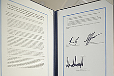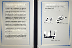 1. We and President Donald J. Trump of the United States of America witnessed the initialing of the agreed upon text of the Agreement on Establishment of Peace and Inter-State relations between the Republic of Azerbaijan and the Republic of Armenia by the Ministers of Foreign Affairs of the Parties. In this respect, we acknowledged the need to continue further actions to achieve the signing and ultimate ratification of the Agreement, and emphasized the importance of maintaining and strengthening peace between our two countries;