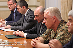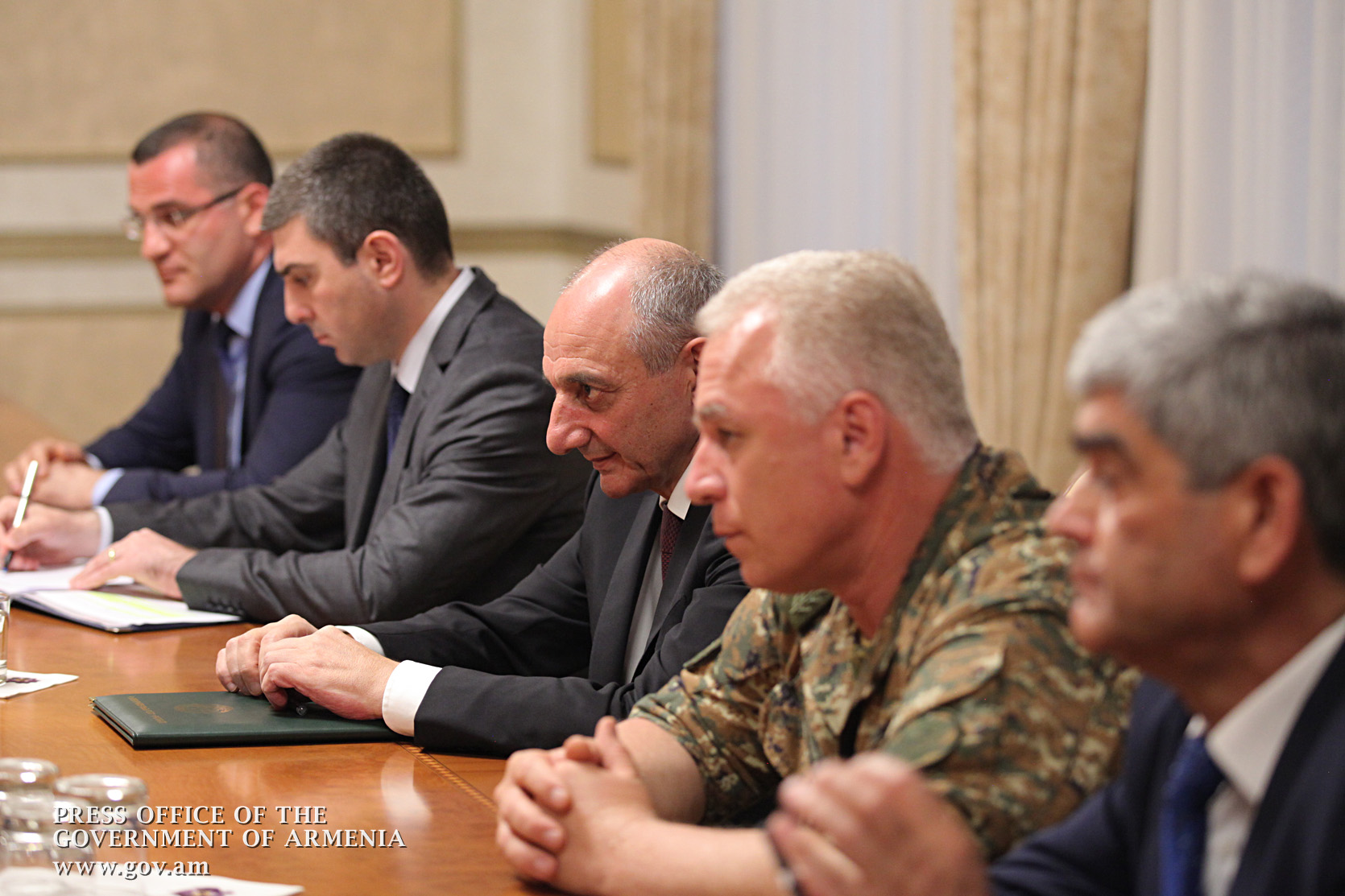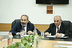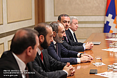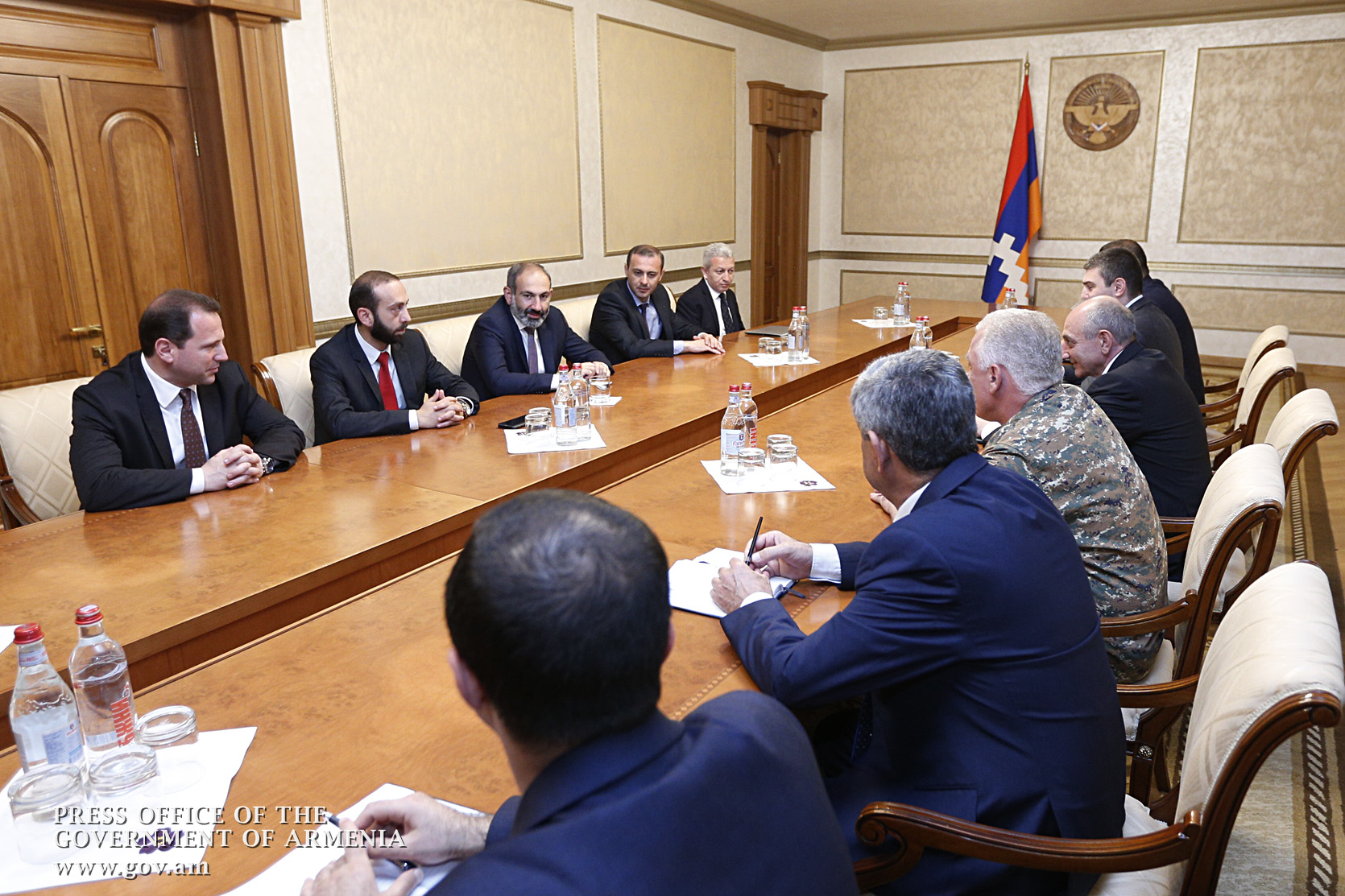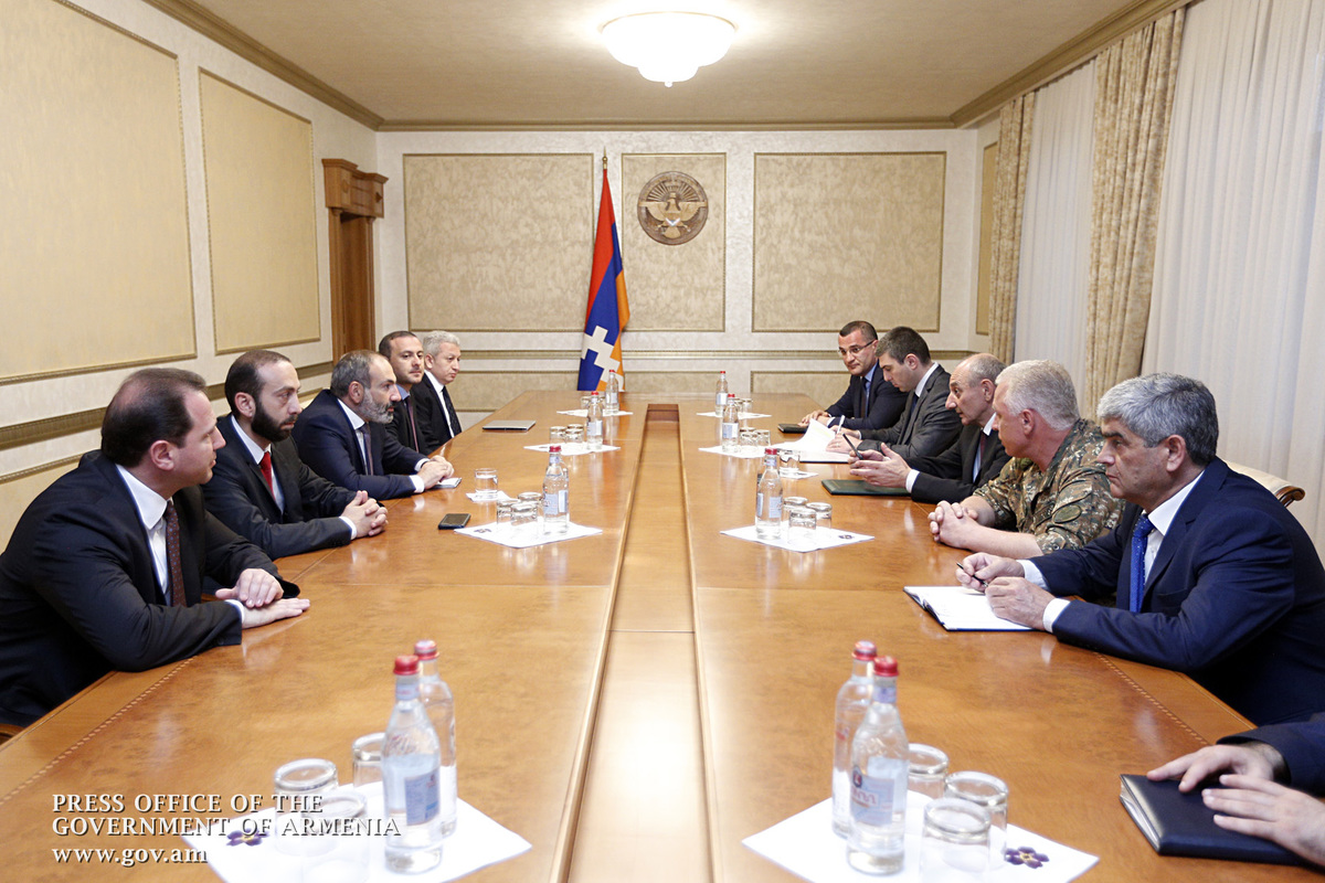 Prime Minister Nikol Pashinyan and Artsakh Republic President Bako Sahakyan met today in the Office of Artsakh President, attended by heads of government departments from the two Armenian States.