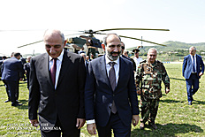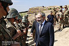 Armenian Prime Minister Nikol Pashinyan joined Artsakh Republic President Bako Sahakyan to inspect the Defense Army positions in the eastern regions of Artsakh. The Heads of State were accompanied by RA Defense Minister David Tonoyan and AR Defense Minister Levon Mnatsakanyan, as well as Artak Davtyan, Head of the General Staff of the Armed Forces, and Movses Hakobyan, Chief Military Inspector of the Republic of Armenia.