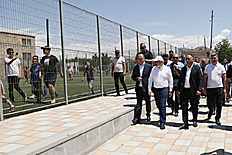 The next stop of the Prime Minister was in Aygezard community. Here Nikol Pashinyan got acquainted with the conditions created in the community park renovated under a subsidy program, near which modern football, tennis and basketball courts have been built. The total cost of the project was 44 million AMD, 65% was provided by the community and 35% by the Government.