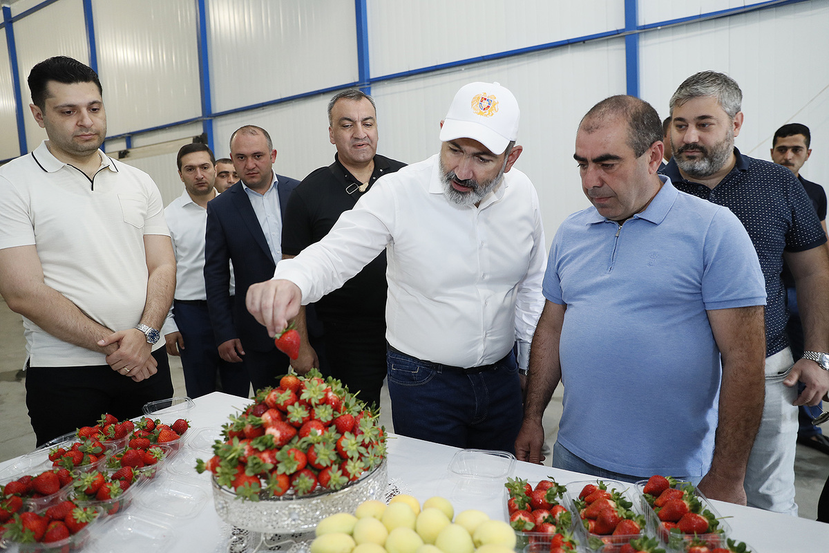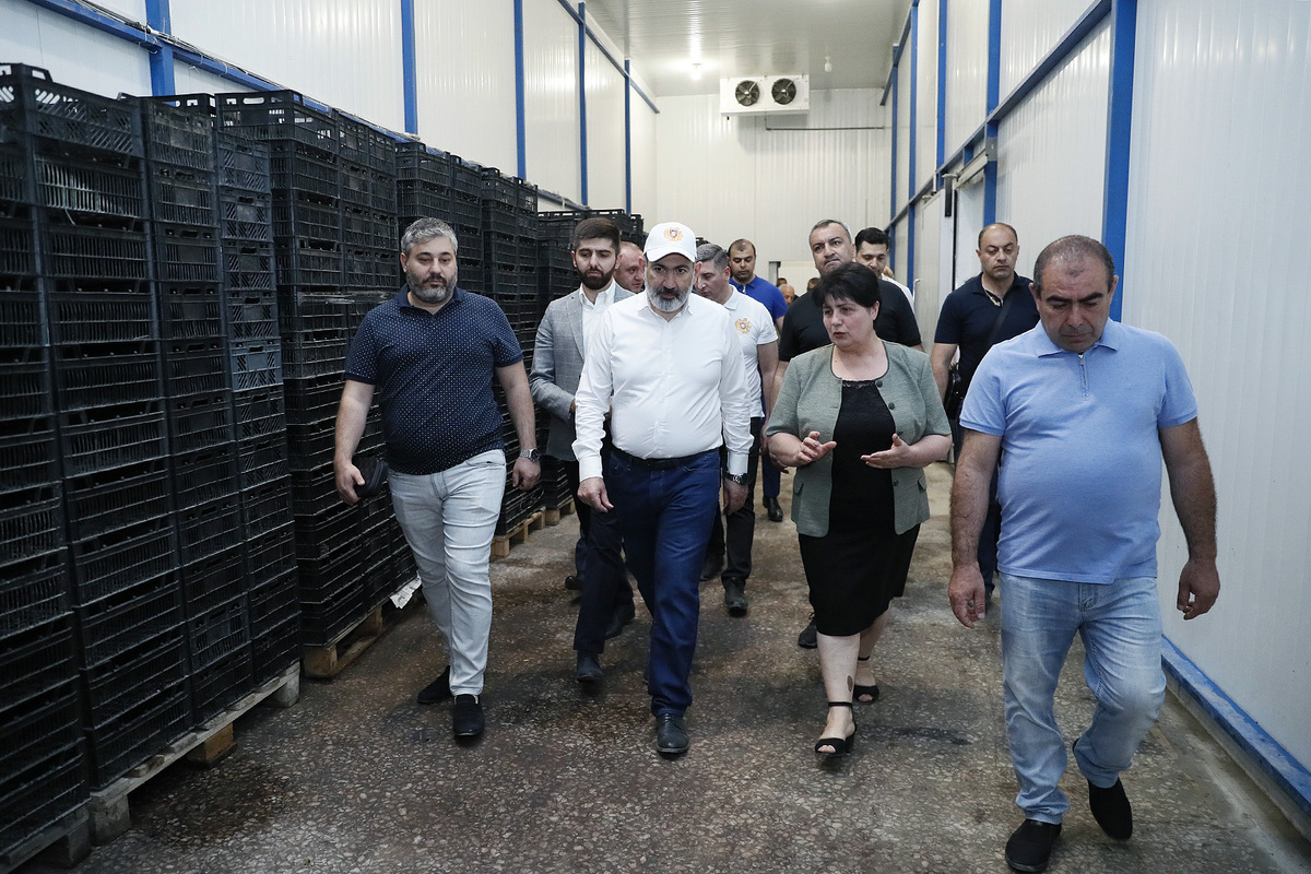 Afterwards, Prime Minister Pashinyan visited Verin Dvin community, where he toured the territory of a refrigerated warehouse for agricultural storage established by the private sector with state support, got acquainted with the latter's activities. It has a capacity of about 5,000 tons, the construction of which was supported by the Government under agri-food leasing program. The total cost of the program was 400 million AMD, of which 300 million AMD was provided by the state through the above-mentioned program. Prime Minister Pashinyan welcomed the establishment of the facility, emphasizing that the Government will continue to support farms through various programs to establish modern farms.