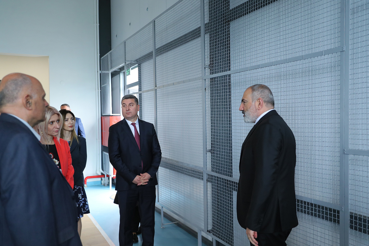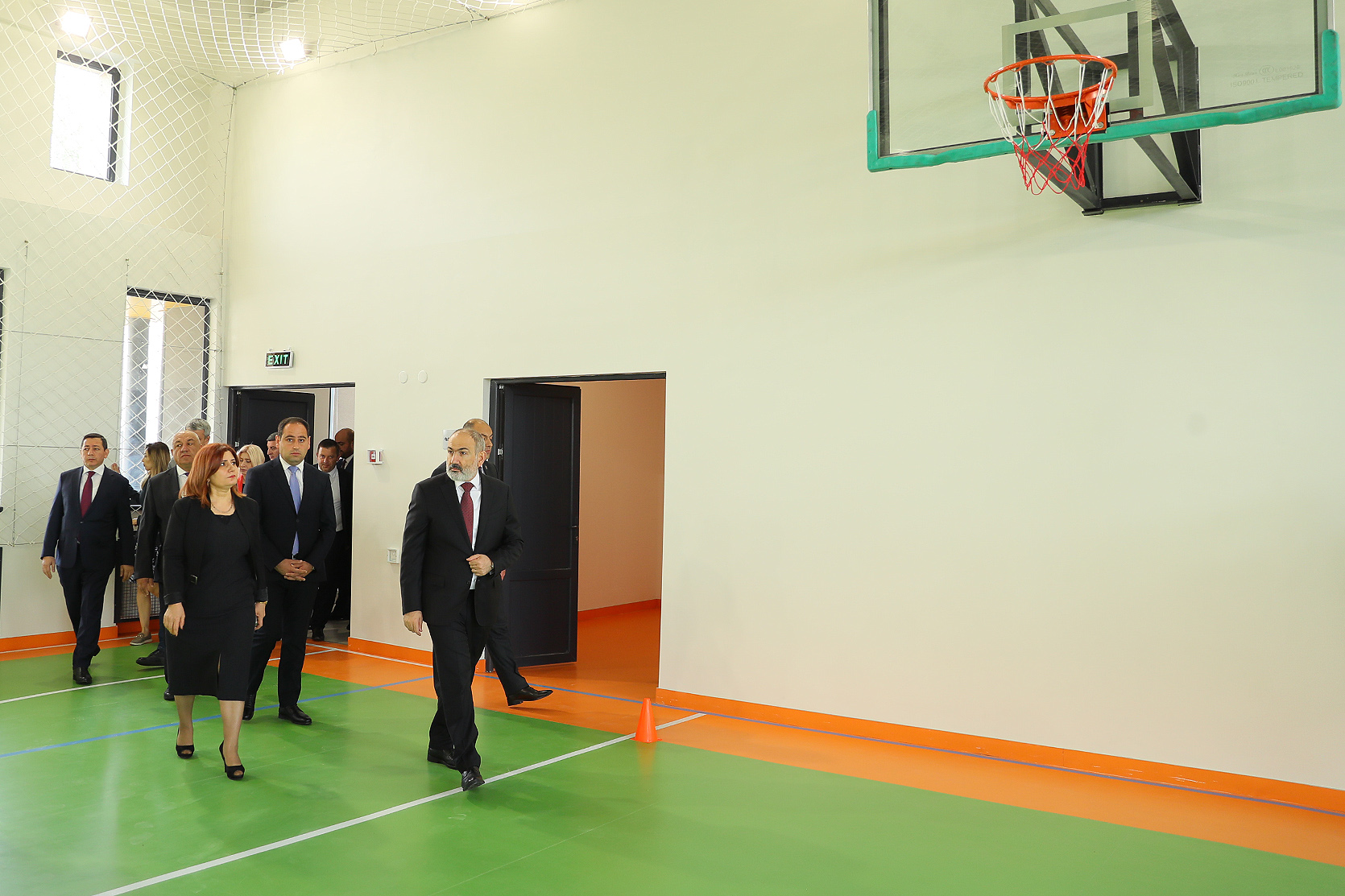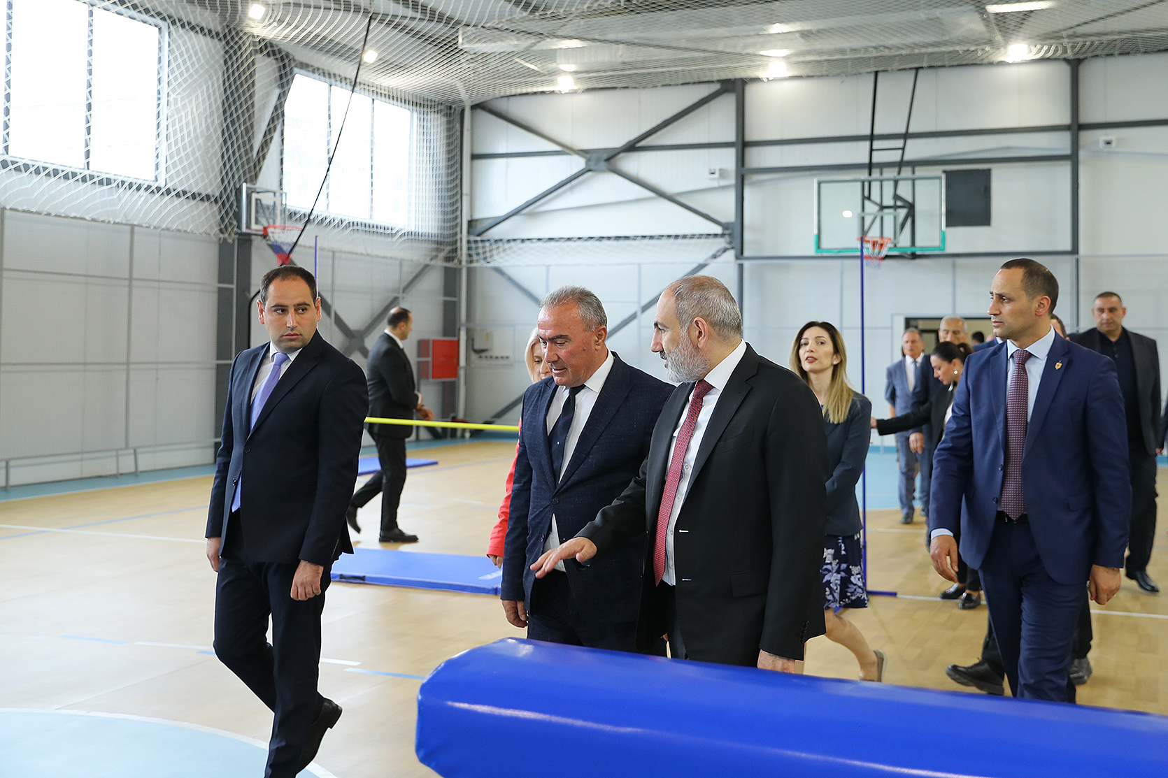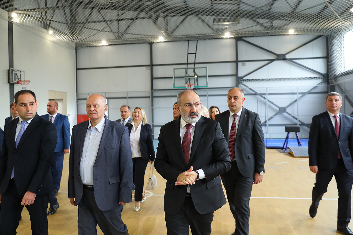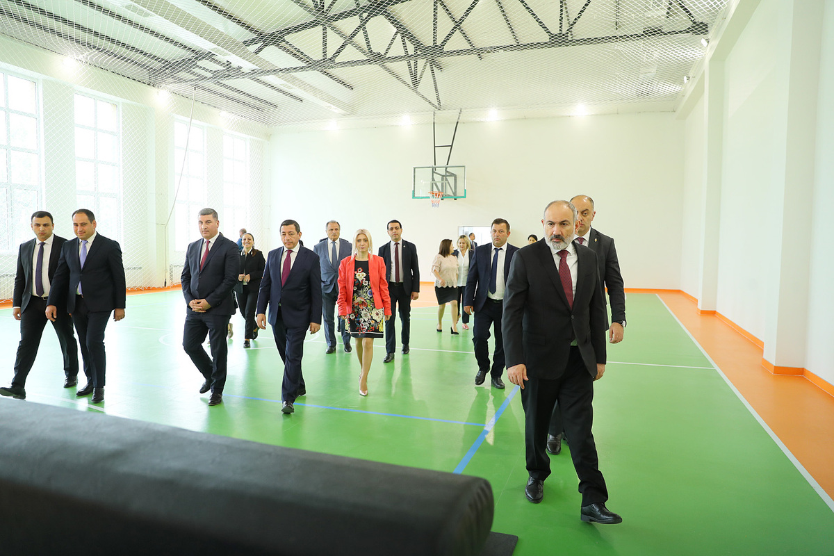 The first stop of the Prime Minister was at the primary school No. 7 named after "Yervand Otyan" in Etchmiadzin, where a new gymnasium and a ceremony hall were built. The total cost of the project launched on April 27, 2022 is 296.4 million AMD.