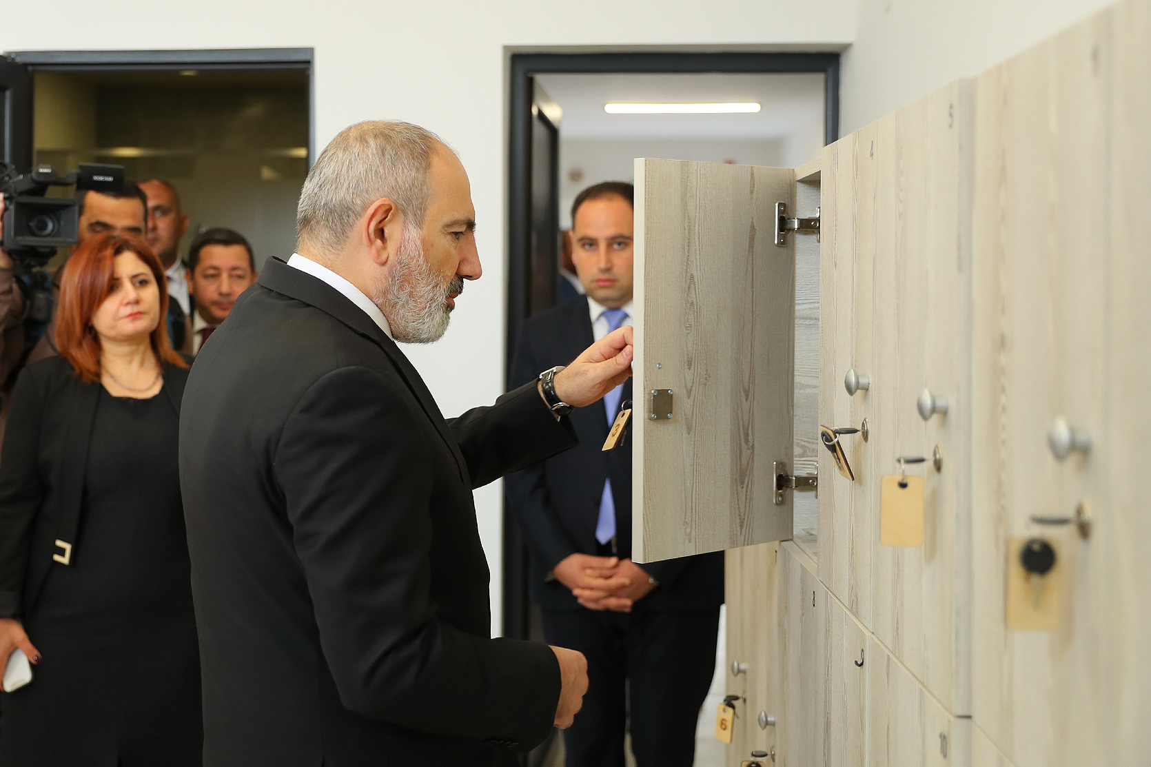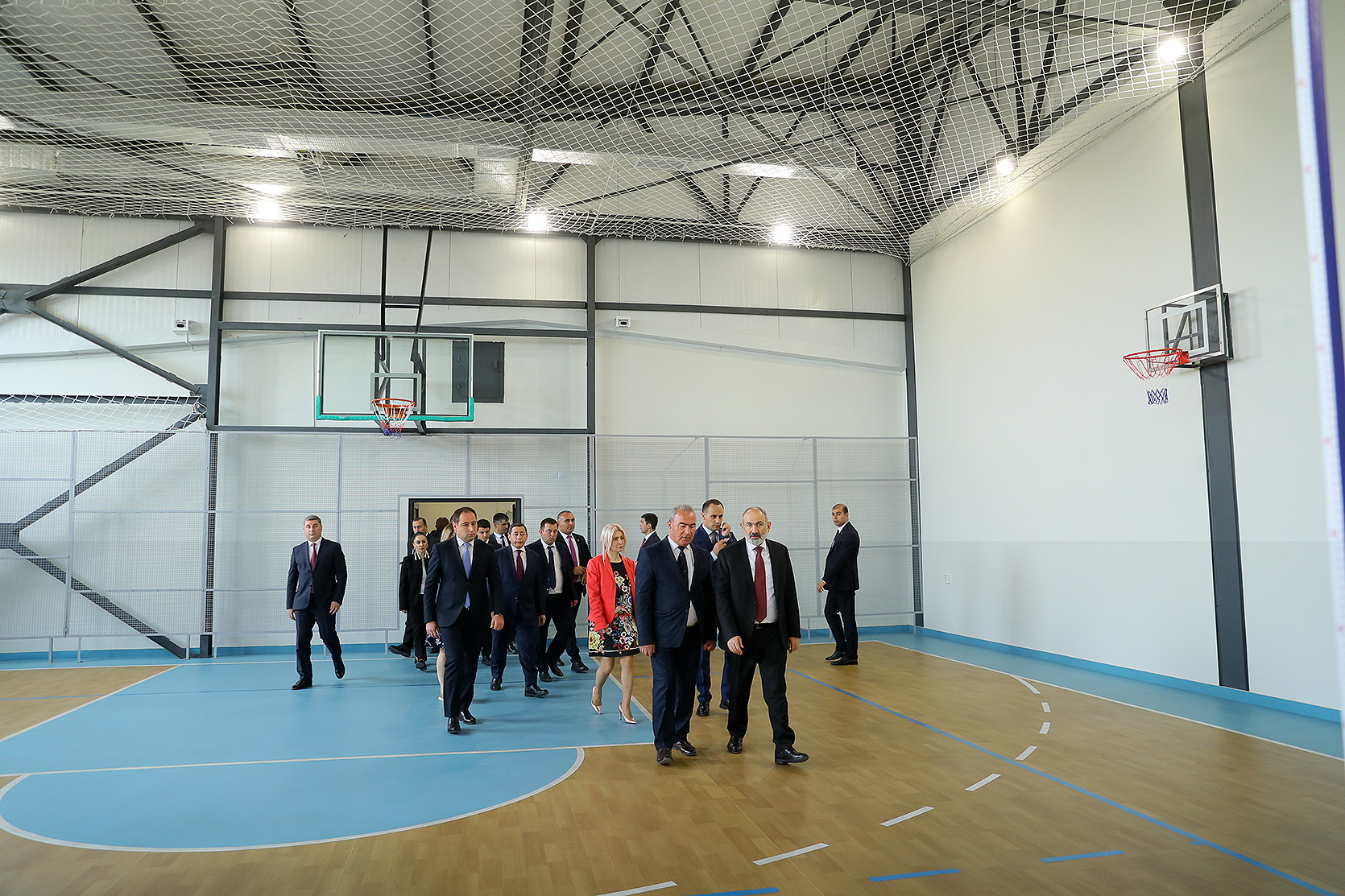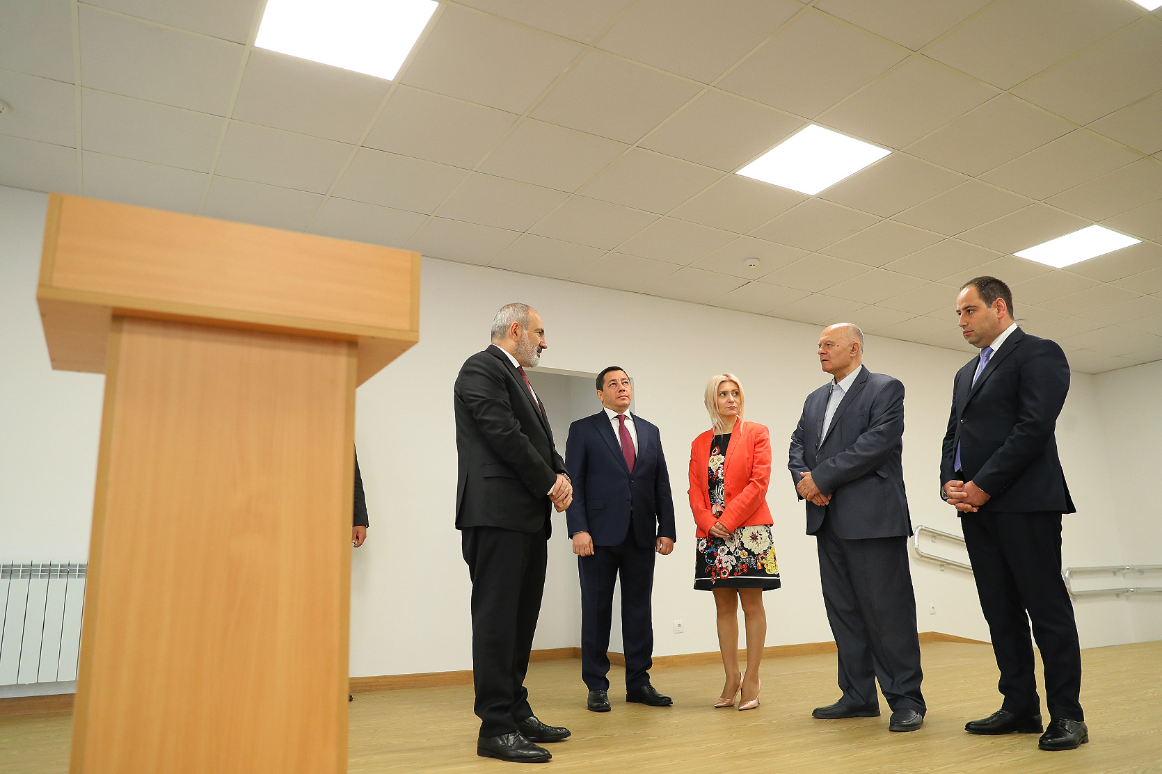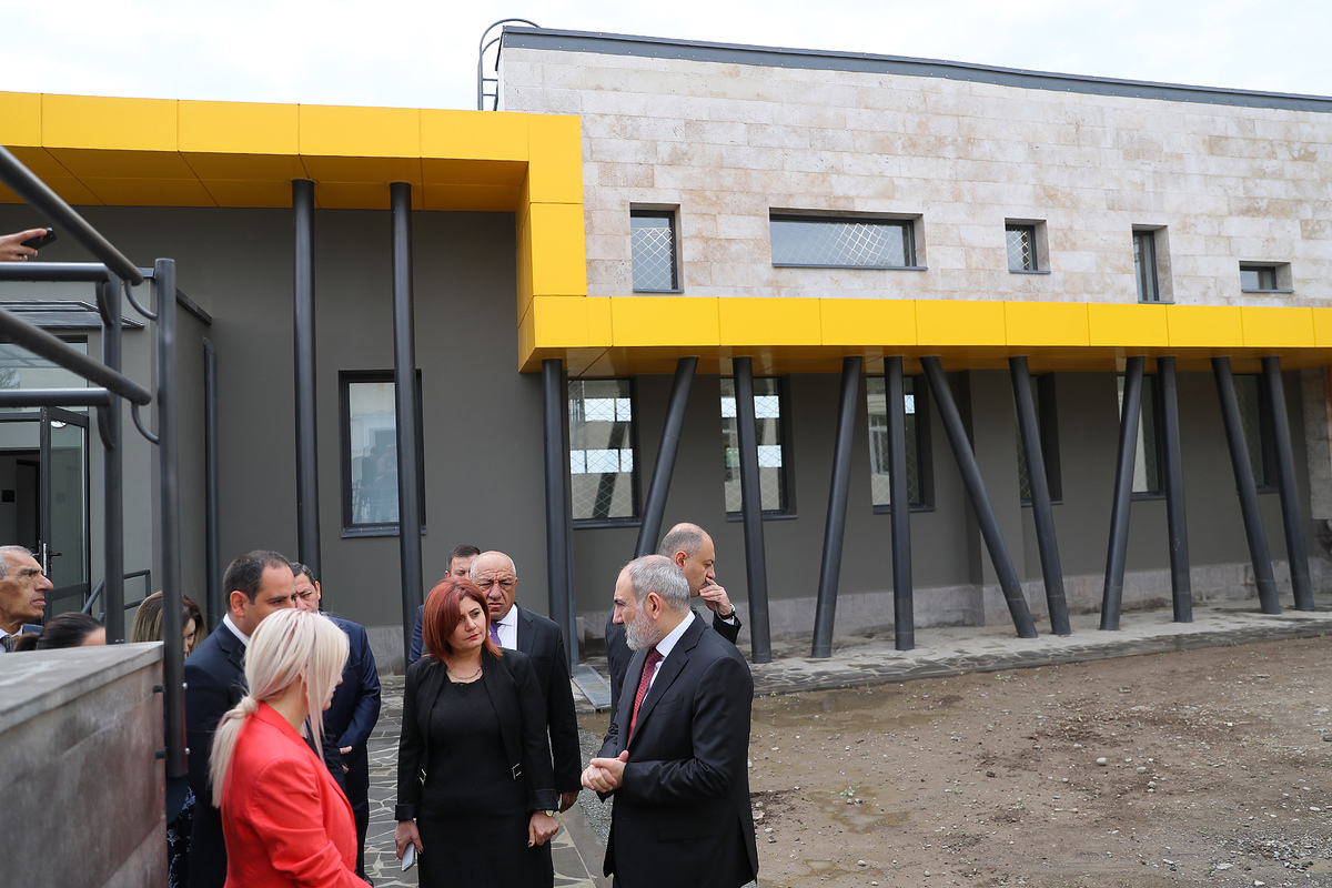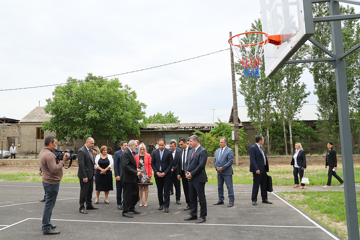 The first stop of the Prime Minister was at the primary school No. 7 named after "Yervand Otyan" in Etchmiadzin, where a new gymnasium and a ceremony hall were built. The total cost of the project launched on April 27, 2022 is 296.4 million AMD.