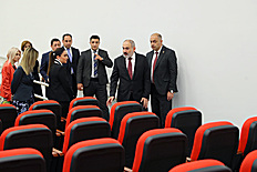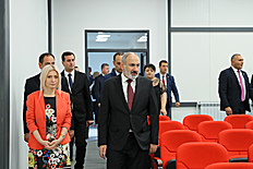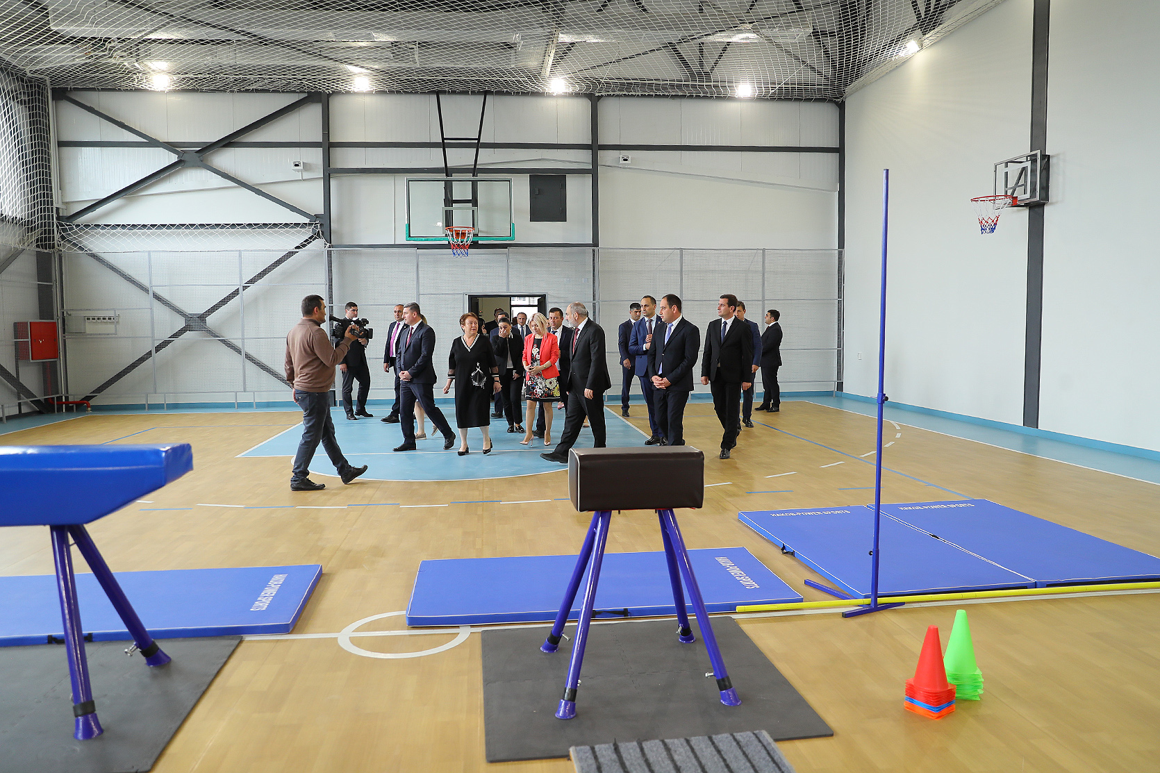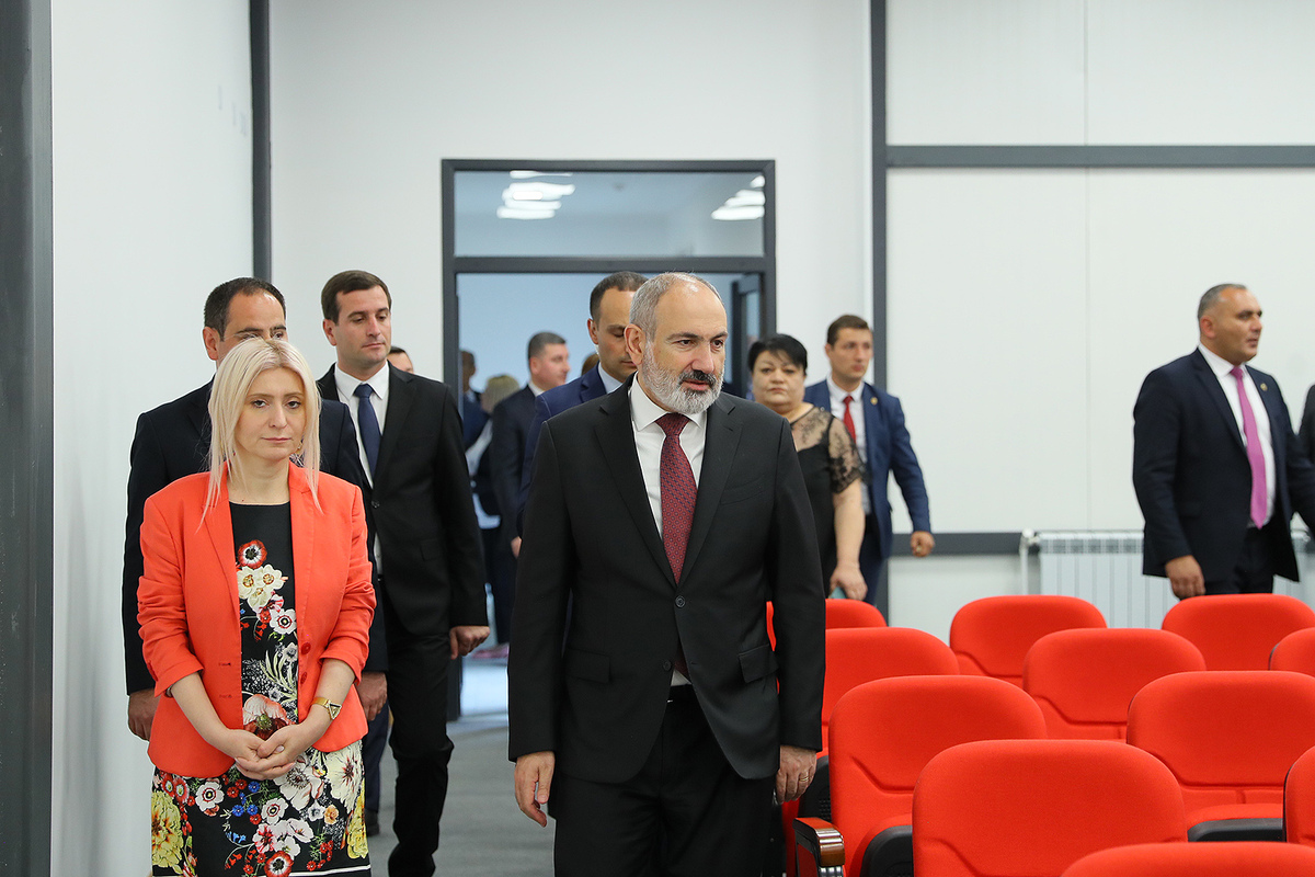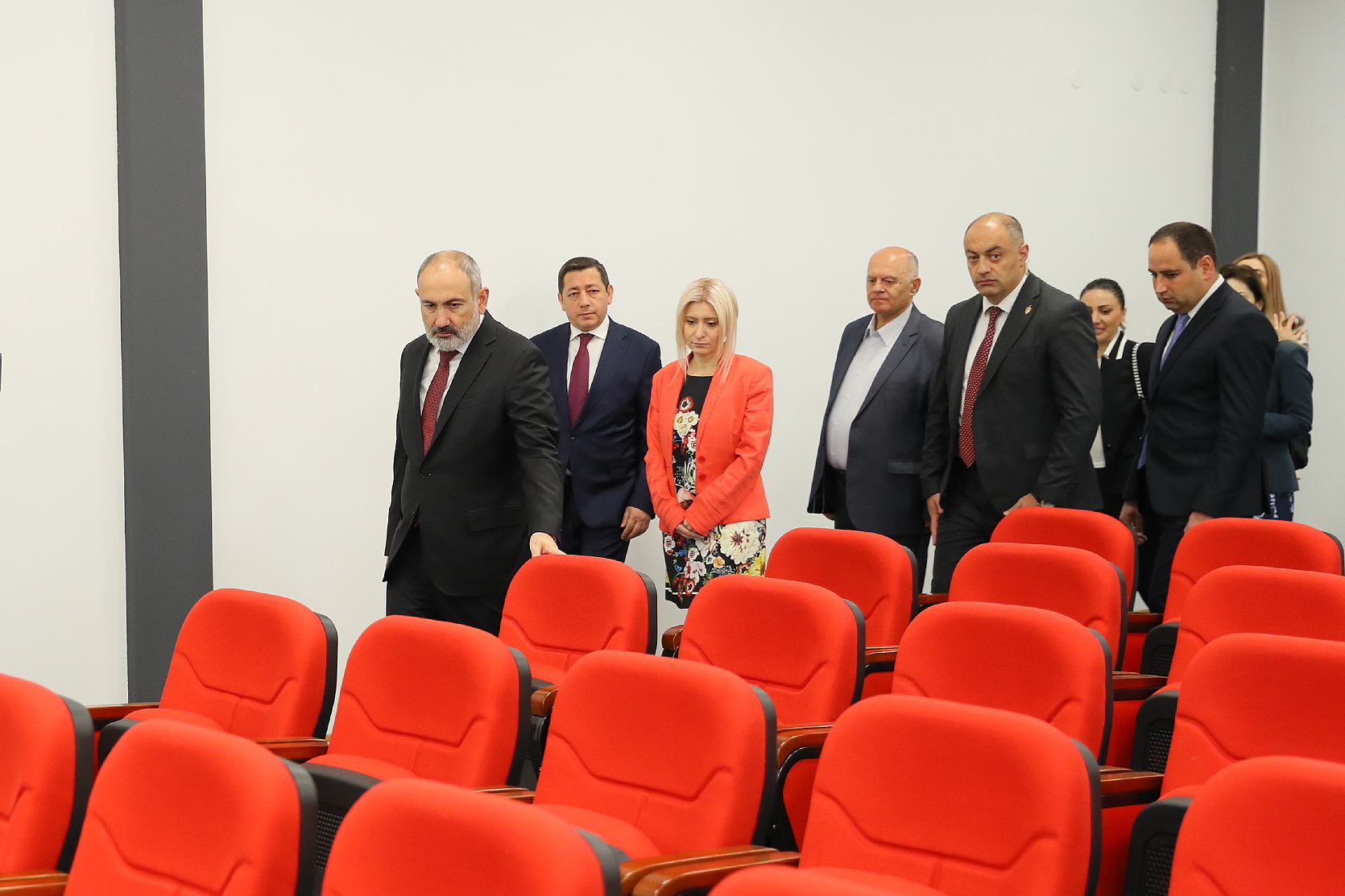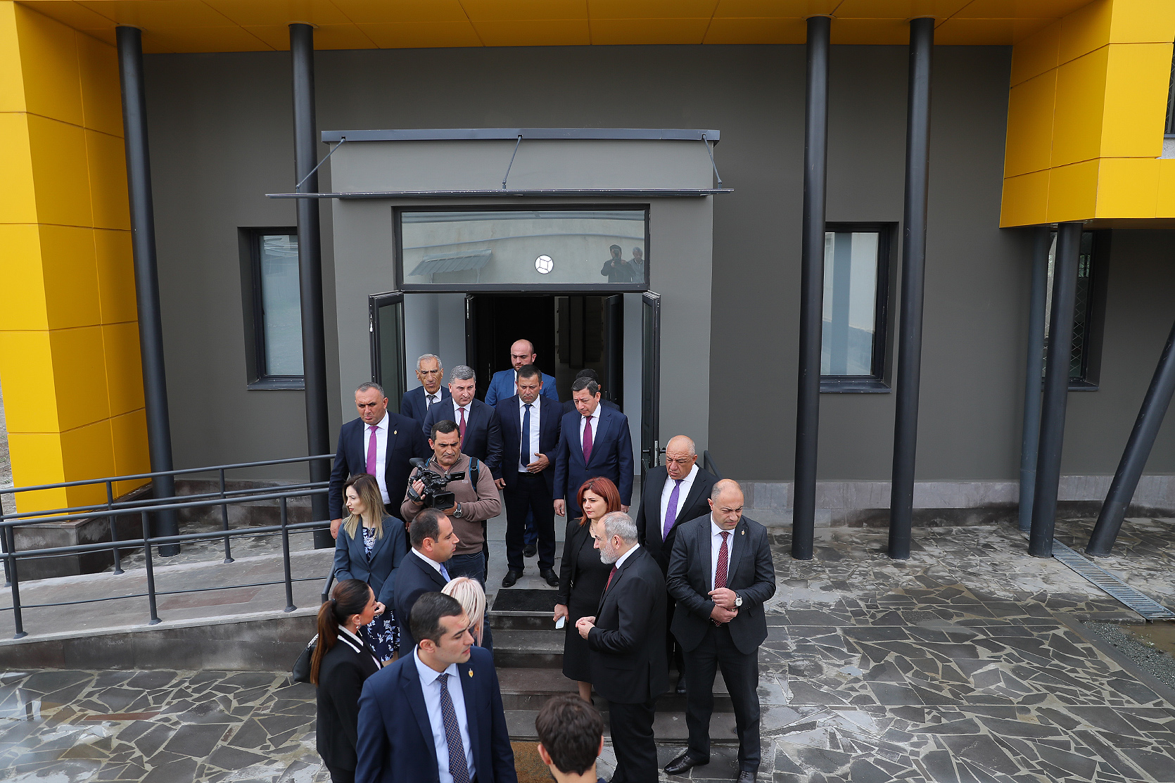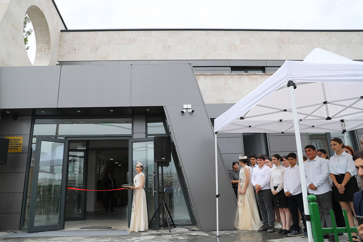 The first stop of the Prime Minister was at the primary school No. 7 named after "Yervand Otyan" in Etchmiadzin, where a new gymnasium and a ceremony hall were built. The total cost of the project launched on April 27, 2022 is 296.4 million AMD.