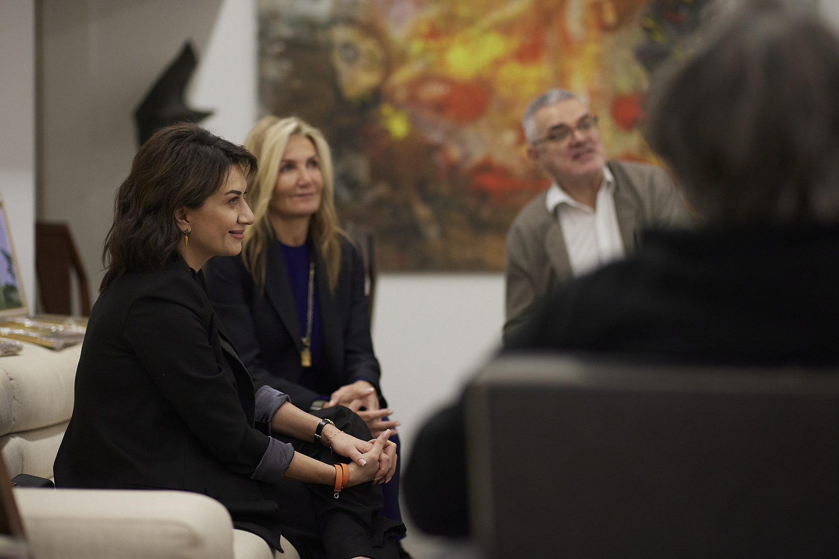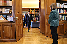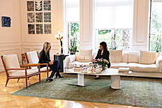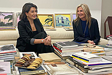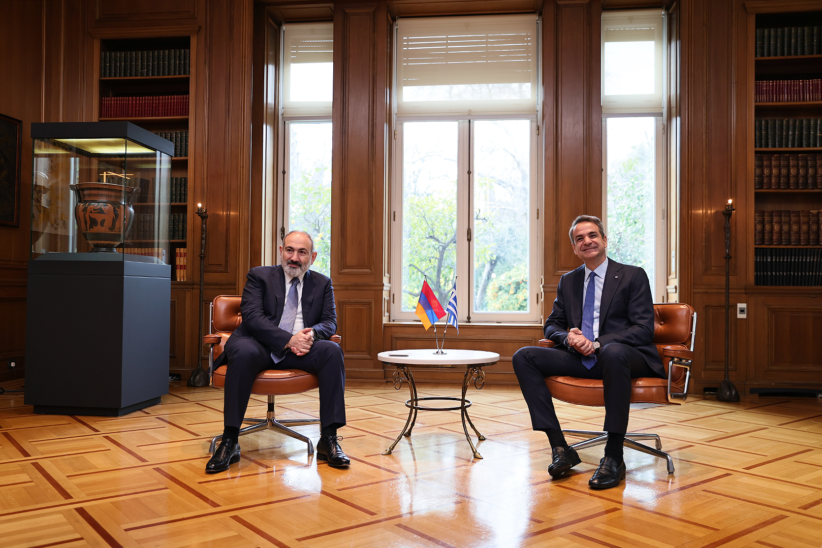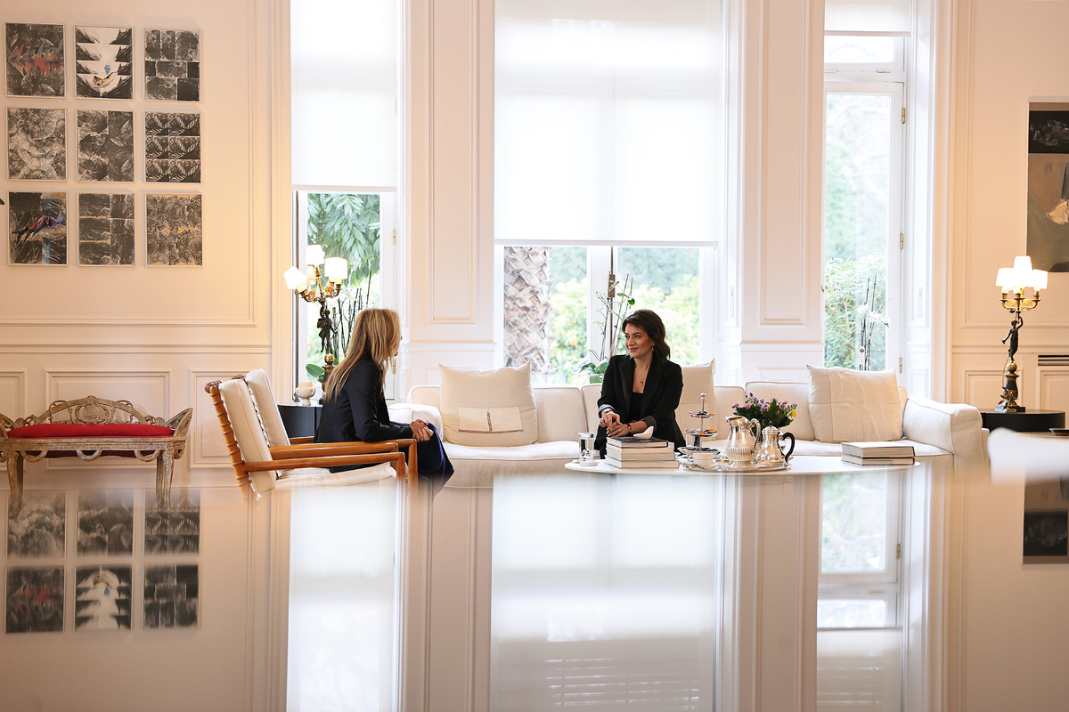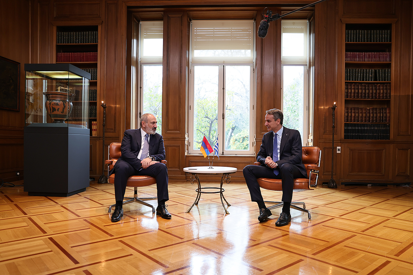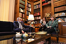 First, a private conversation between Nikol Pashinyan and Kyriakos Mitsotakis took place. The meeting of Anna Hakobyan and Mareva Grabowski-Mitsotakis was also held separately, followed by their visit to the Armenian "Kalfayan" Galleries in Athens, where they got acquainted with the presented exhibits.