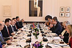Being aware of your efforts in the implementation of reforms, we support and deepen the institutional dialogue between Greece and Armenia. Greece is closely following the events taking place in the Caucasus, from the very first moment we expressed our solidarity with the Armenian people by sending humanitarian aid to thousands of Armenians forcibly displaced from Nagorno Karabakh, at the same time, being an advocate of international law in solving problems through diplomatic dialogue. Greece unequivocally condemns the use of force and supports the negotiation process between Armenia and Azerbaijan, which aims to establish solidarity, peace that will be lasting and will contribute to the creation of good neighborhood and relations. Once again, I welcome you, Mr. Prime Minister."