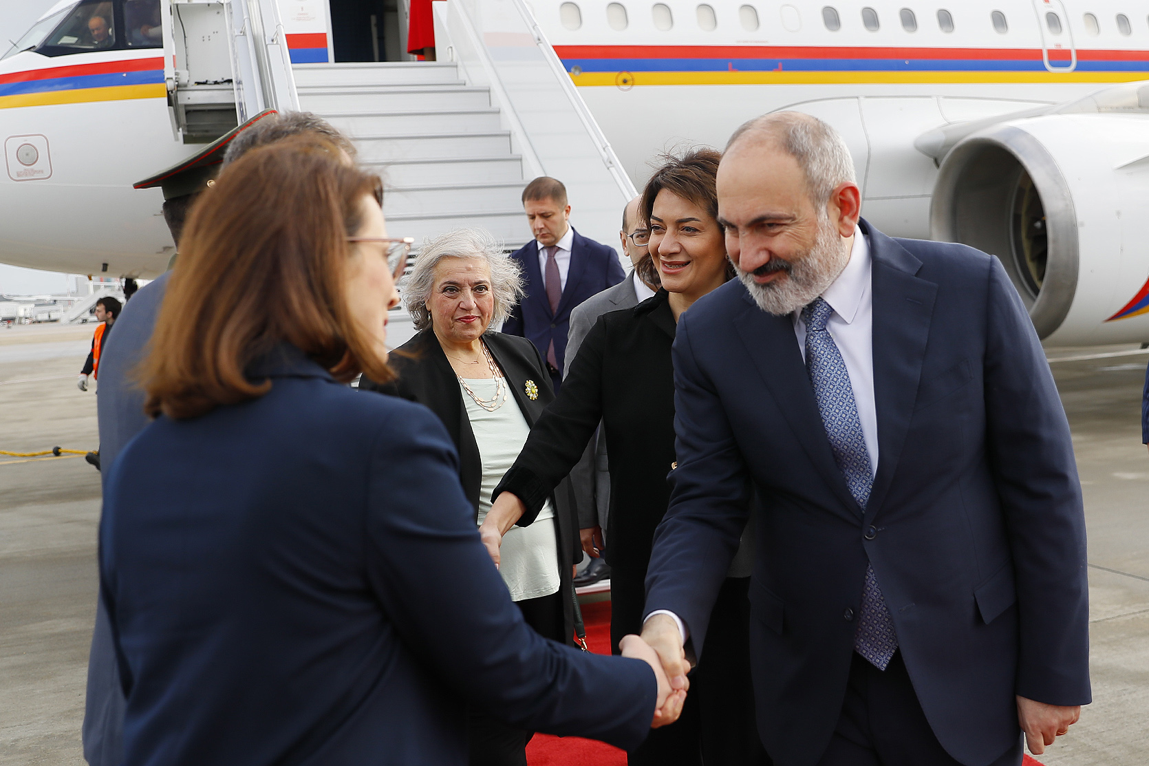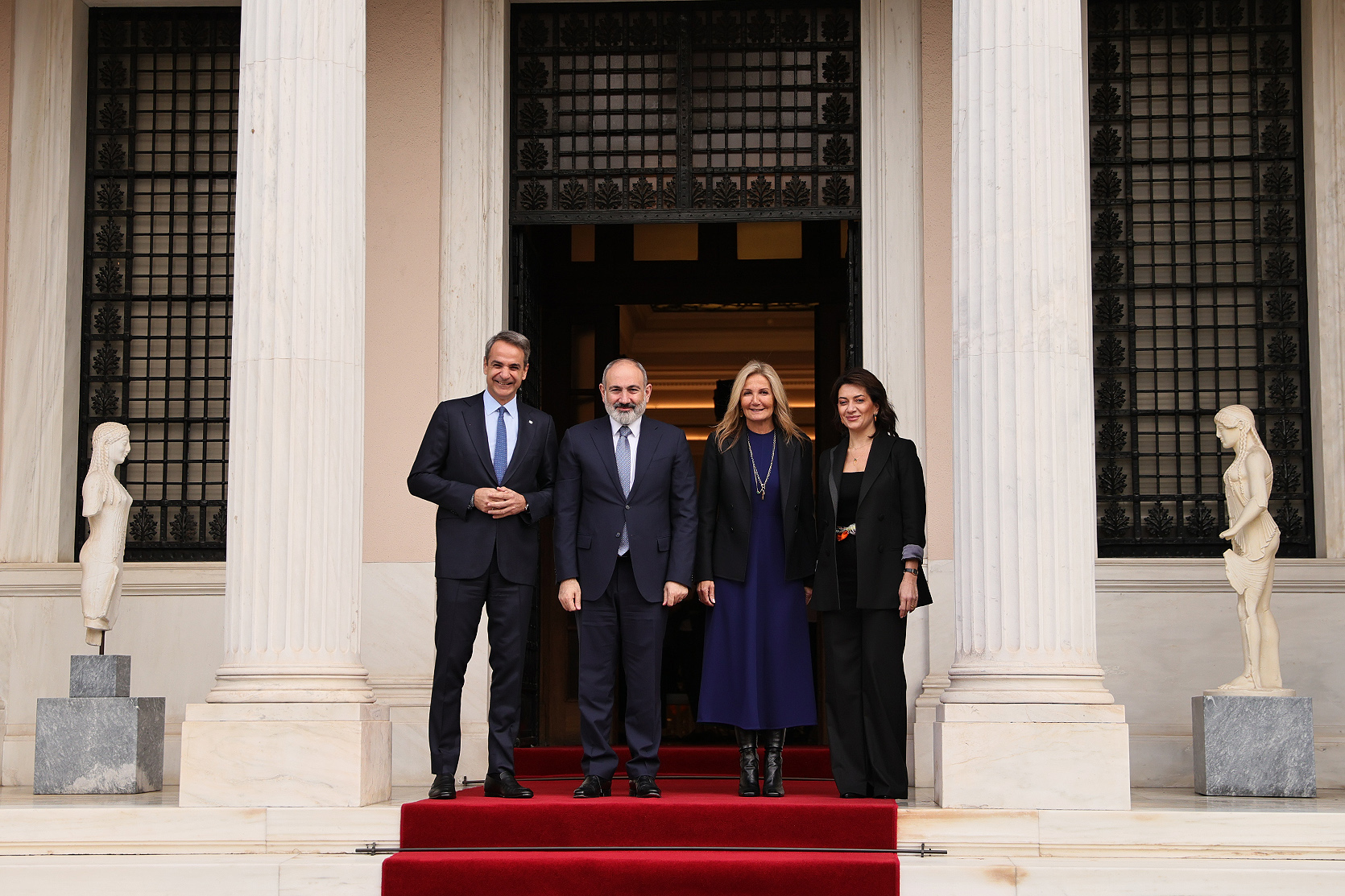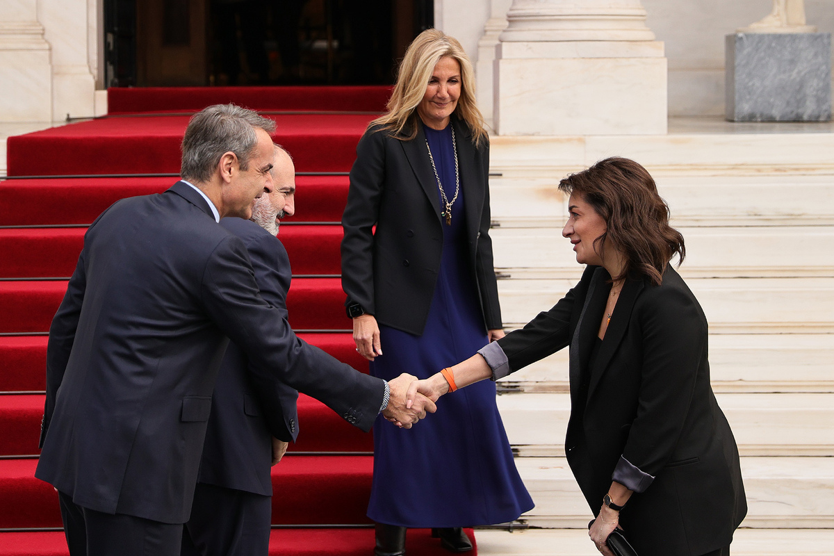 Prime Minister Nikol Pashinyan visited the Greek government with his wife Anna Hakobyan, where they were welcomed by Greek Prime Minister Kyriakos Mitsotakis and his wife Mareva Grabowski-Mitsotakis.