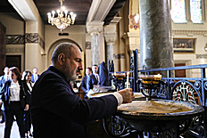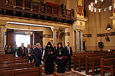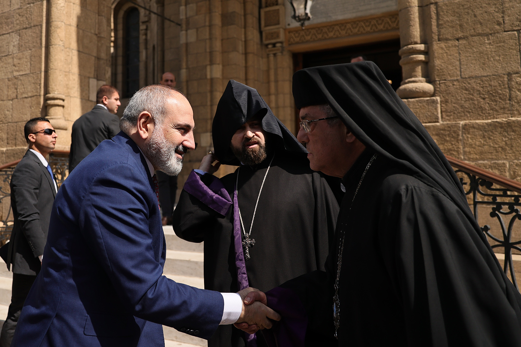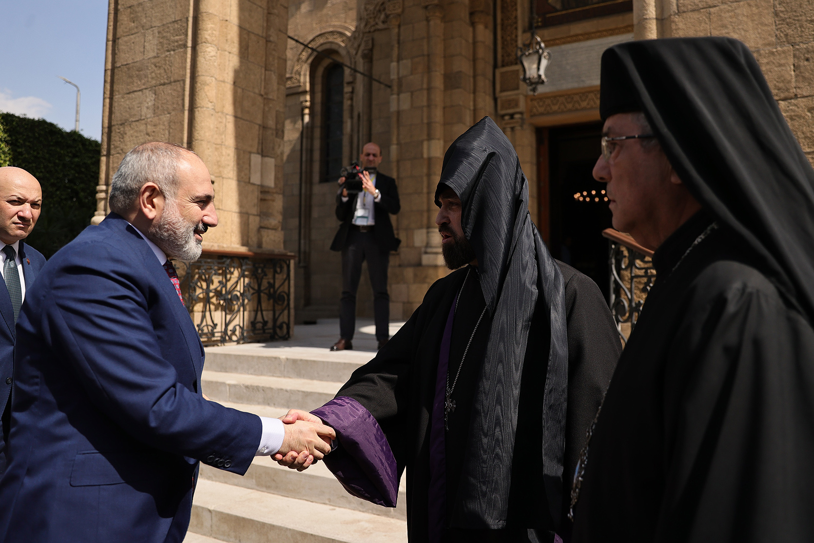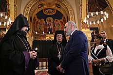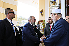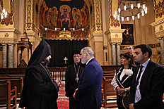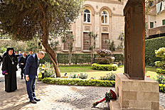 The Prime Minister was welcomed by the Primate of the Armenian Diocese of Egypt, His Grace Bishop Ashot Mnatsakanyan and the leader of the Armenian Catholic Church in Egypt Krikor Augustinos Kousa. The Prime Minister lit a candle and laid flowers at the cross-stone commemorating the victims of the Armenian Genocide.