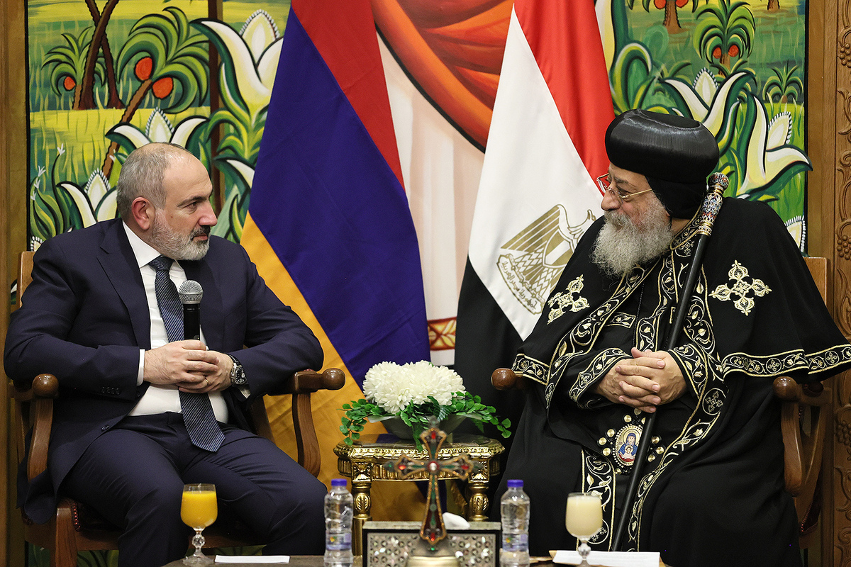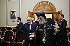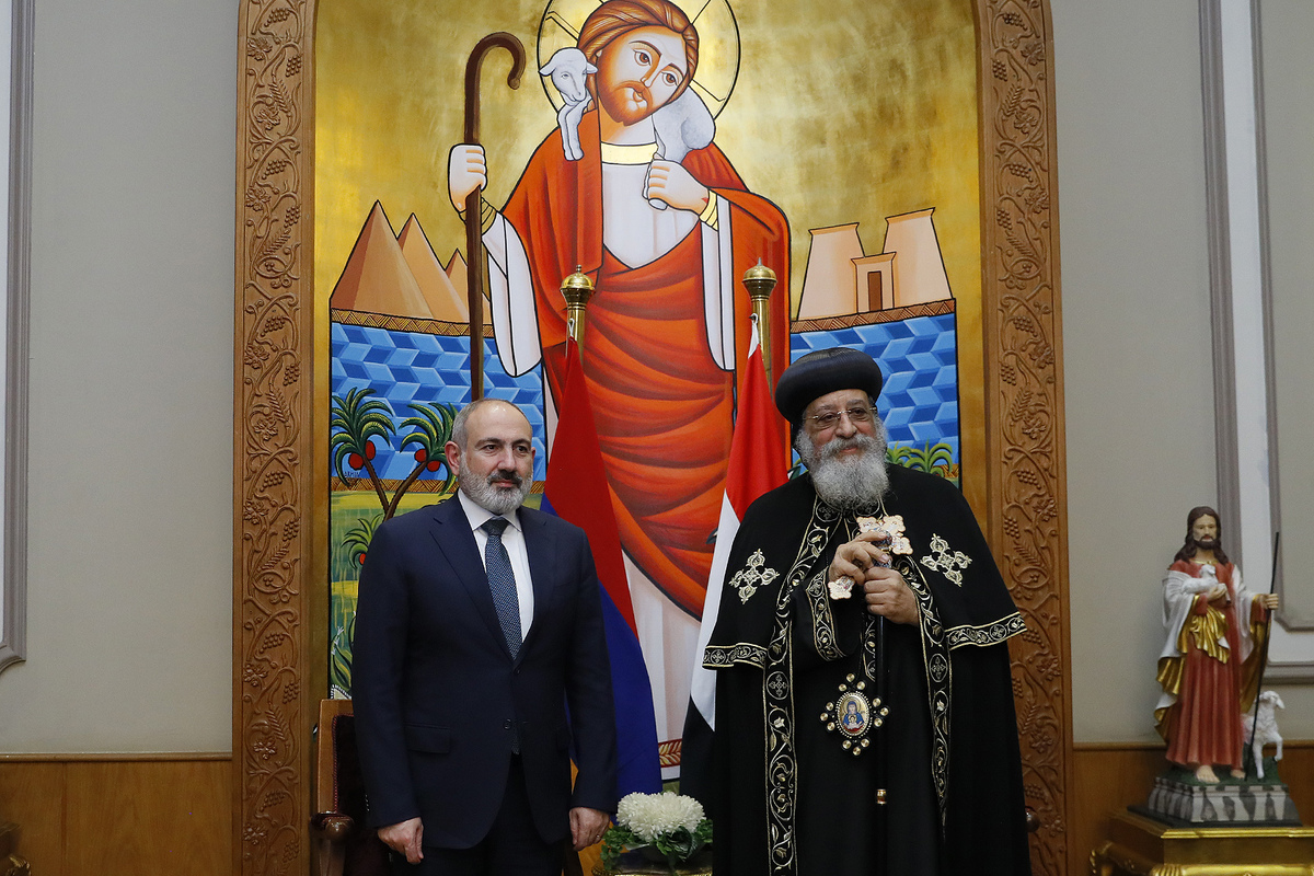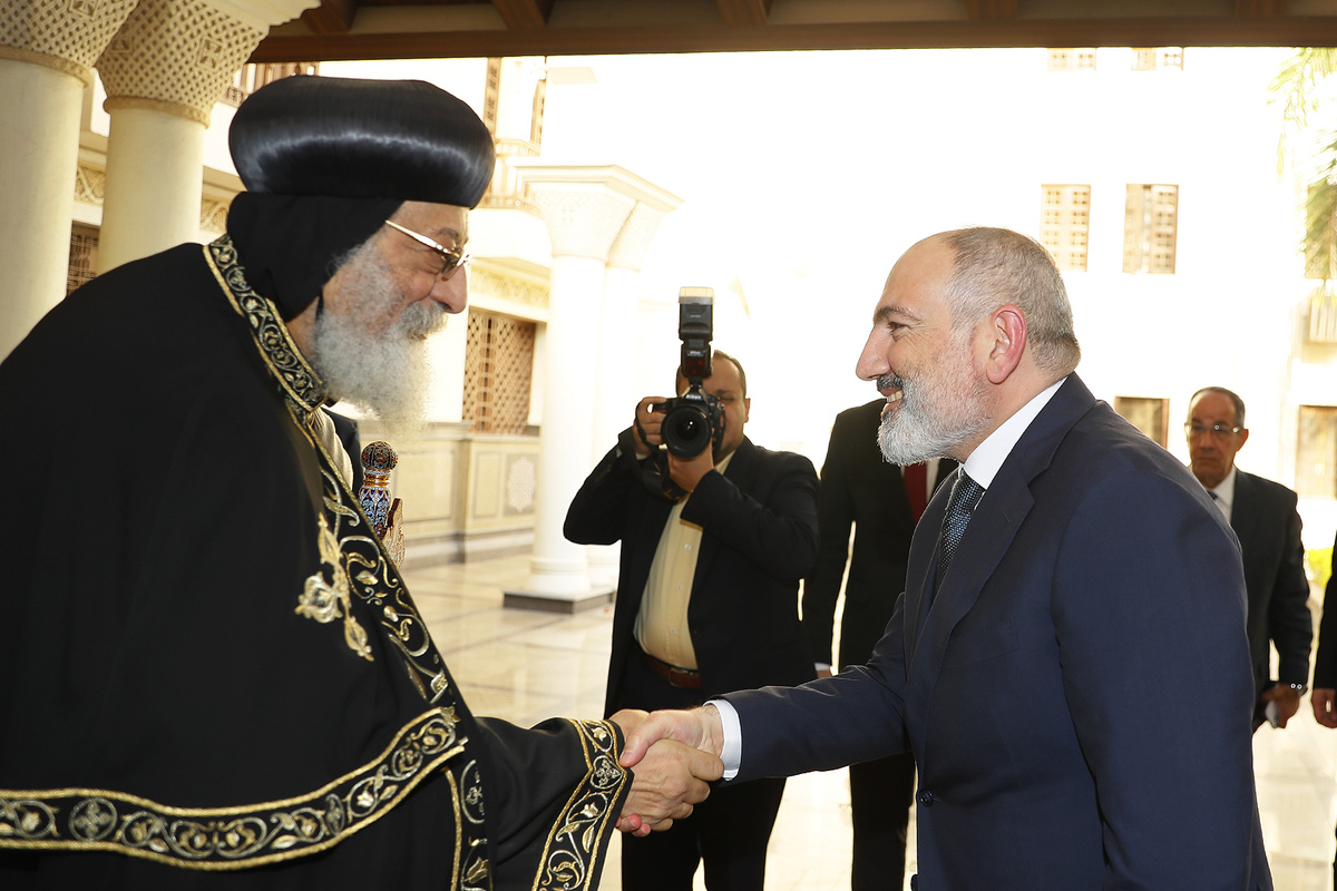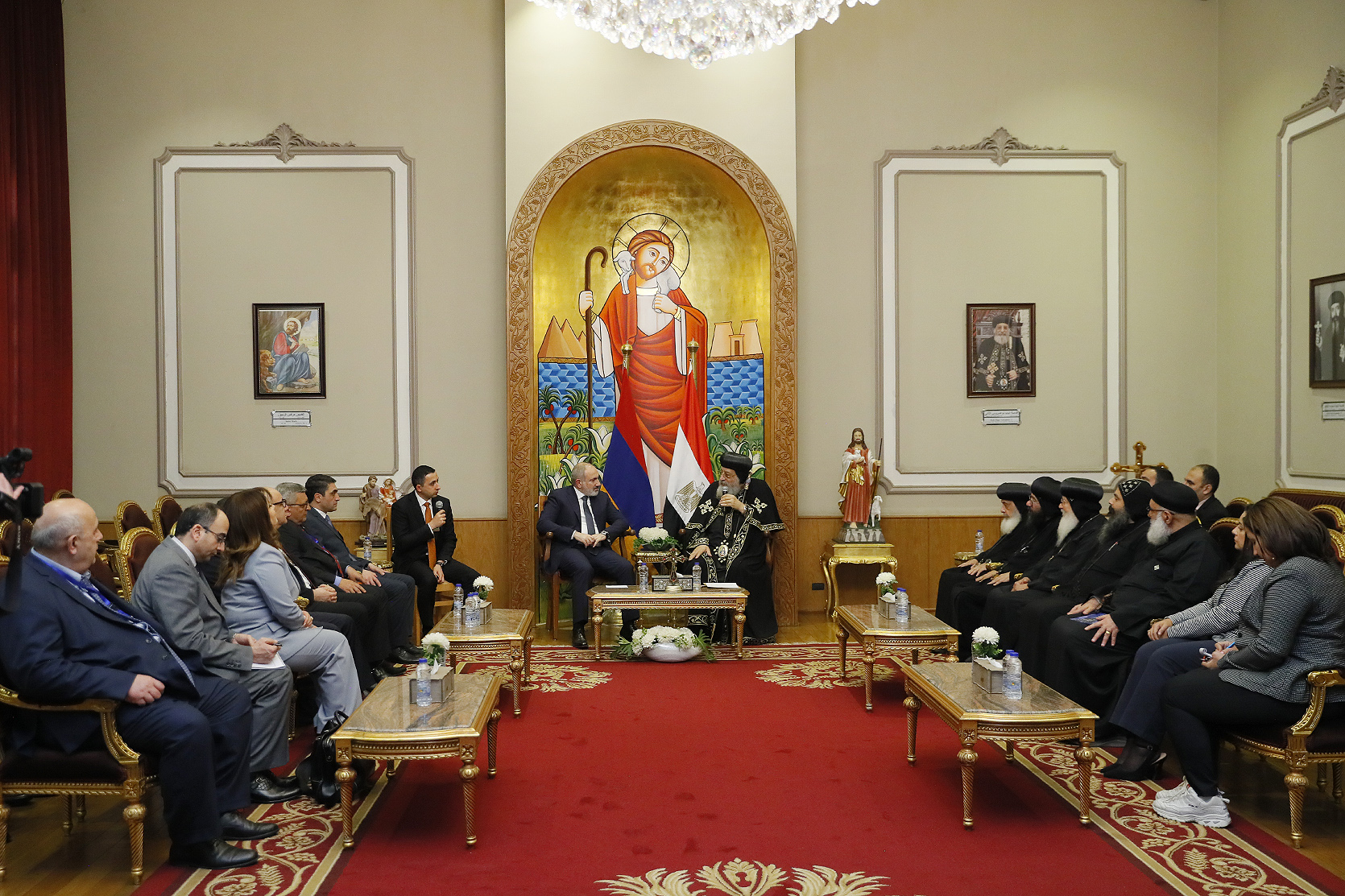As part of his official visit to Egypt, Prime Minister Nikol Pashinyan visited St. Mark's Coptic Orthodox Cathedral in Abbassia, where he had a meeting with the leader of the Coptic Orthodox Church, Pope Tawadros II of Alexandria and All Africa.