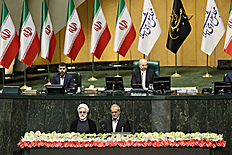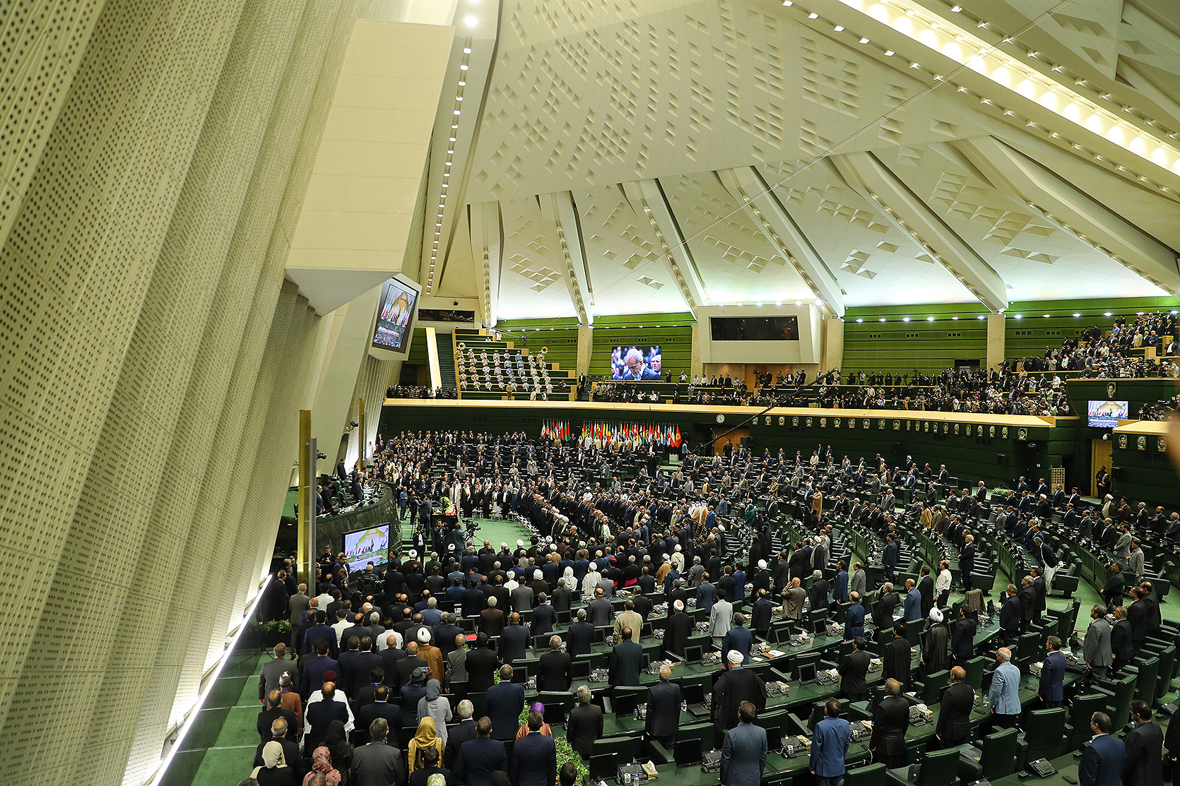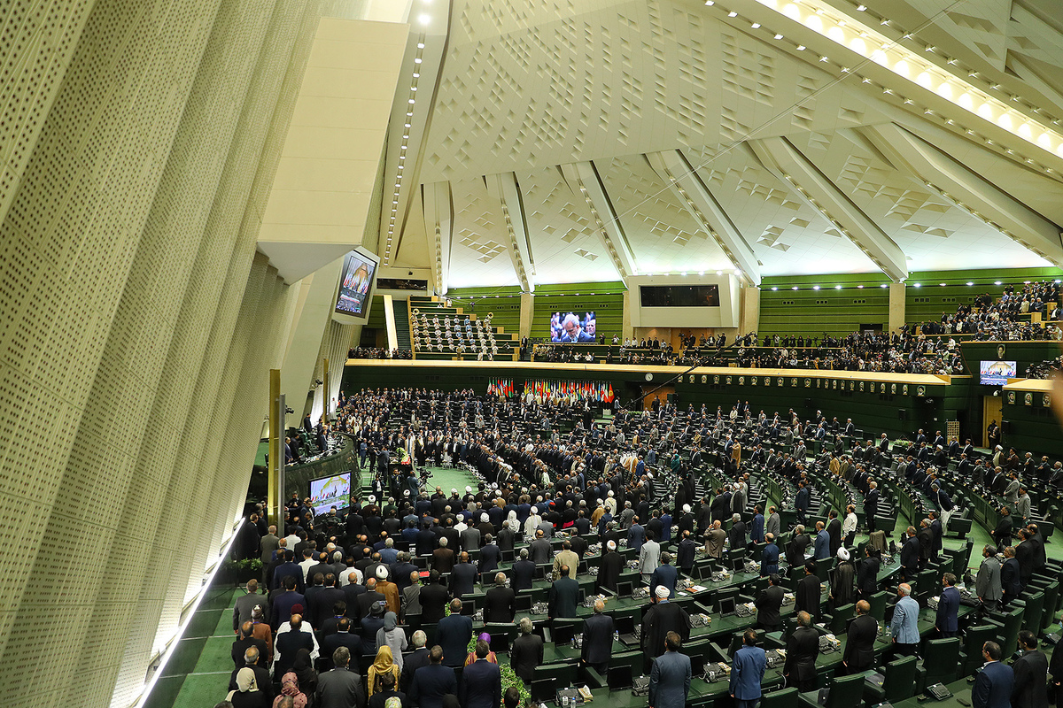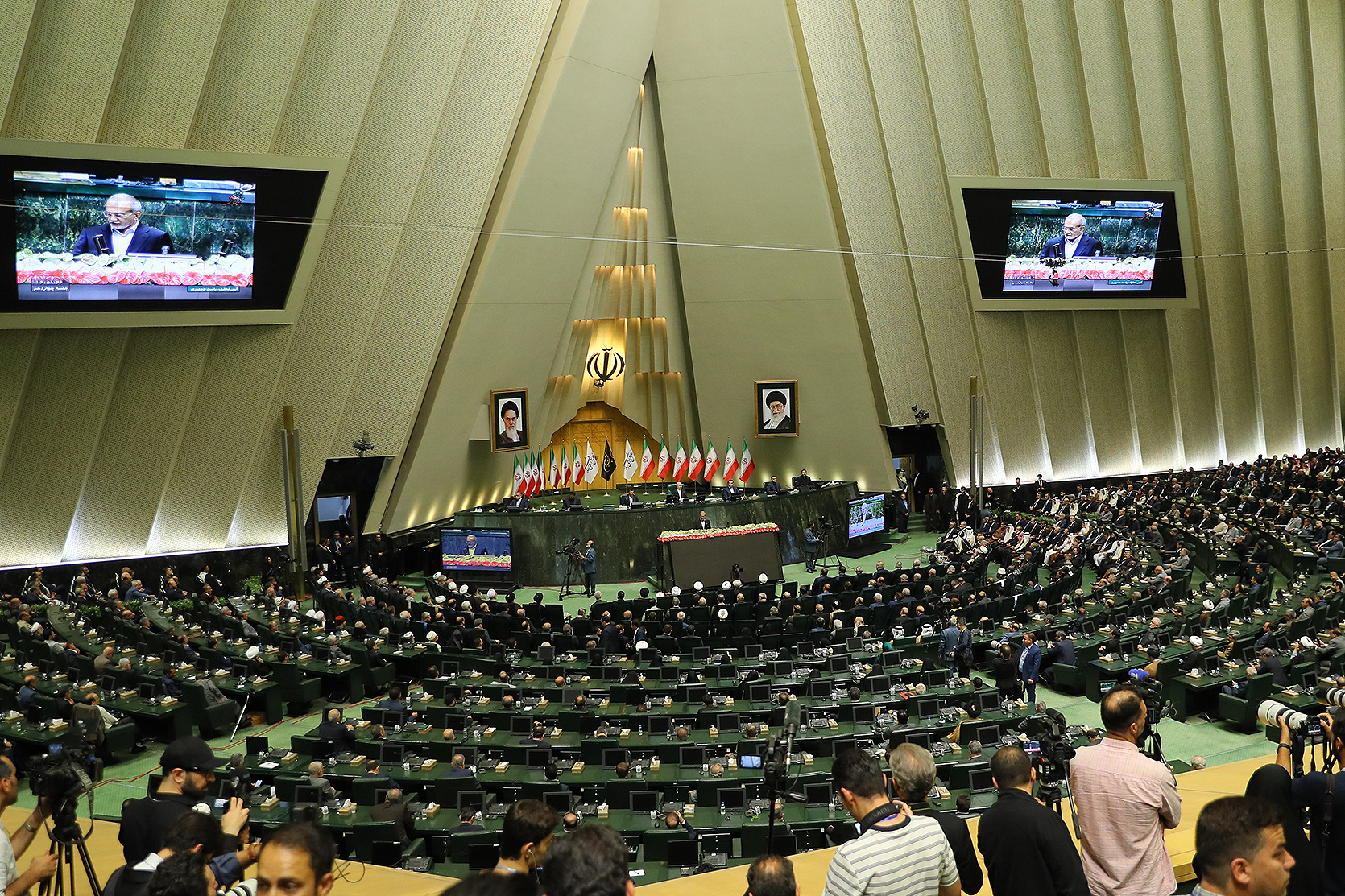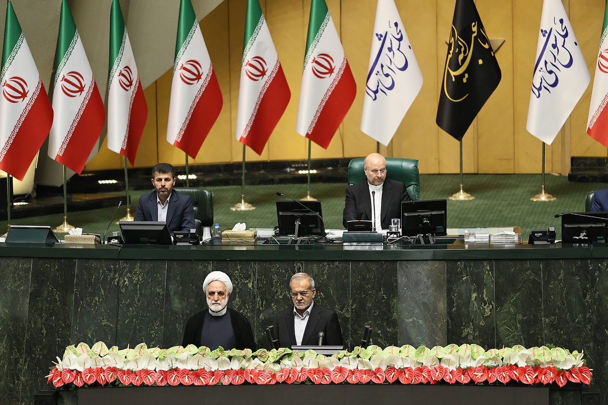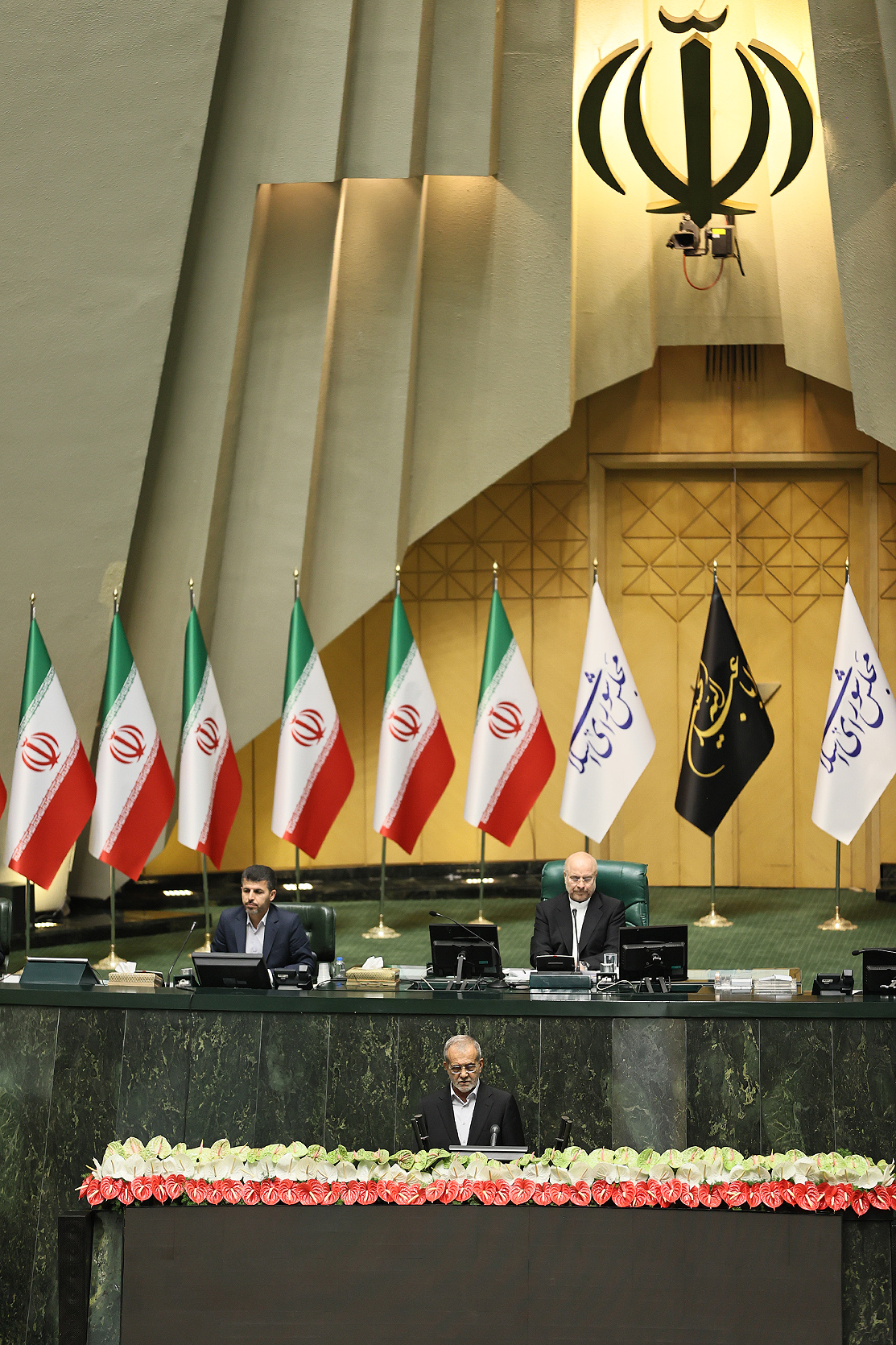 At the beginning of the swearing-in ceremony, Mohammad Bagher Ghalibaf, the Speaker of the Majles of the Republic of Iran, addressed the audience, then the head of Iran's judicial system, Gholam Hossein Mohseni Eje'i , gave a speech.