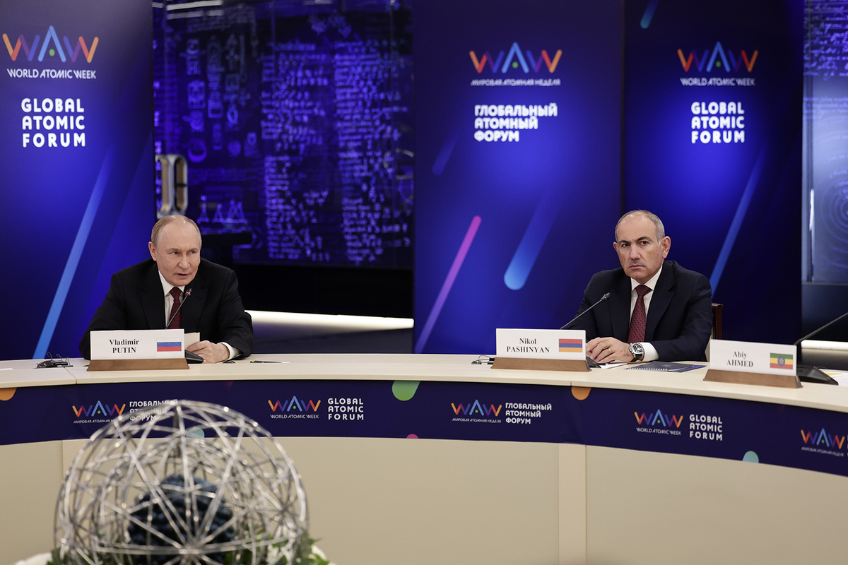 Prime Minister Nikol Pashinyan participated in the conference “World Atomic Week” in Moscow. The event was also attended by Russian President Vladimir Putin, Belarusian President Alexander Lukashenko, IAEA Director General Rafael Mariano Grossi, Myanmar Acting President Min Aung Hlaing, Ethiopian Prime Minister Abiy Ahmed Ali, Iranian Vice President Mohammad Eslami, and Uzbek Deputy Prime Minister Jamshid Khojayev.