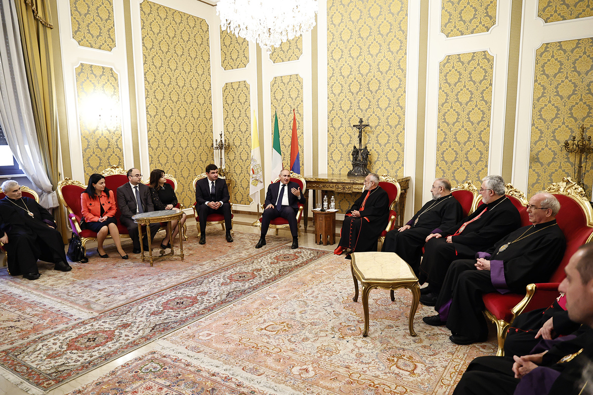 During his working visit to the Holy See (Vatican), Prime Minister Nikol Pashinyan met with Armenian Catholicos-Patriarch of the Catholicosate of Cilicia, His Eminence and Beatitude Father Raphael Petros 21st Minasyan, and students of the college at the Levonian College attached to the St. Nicholas Armenian Catholic Church in Rome.