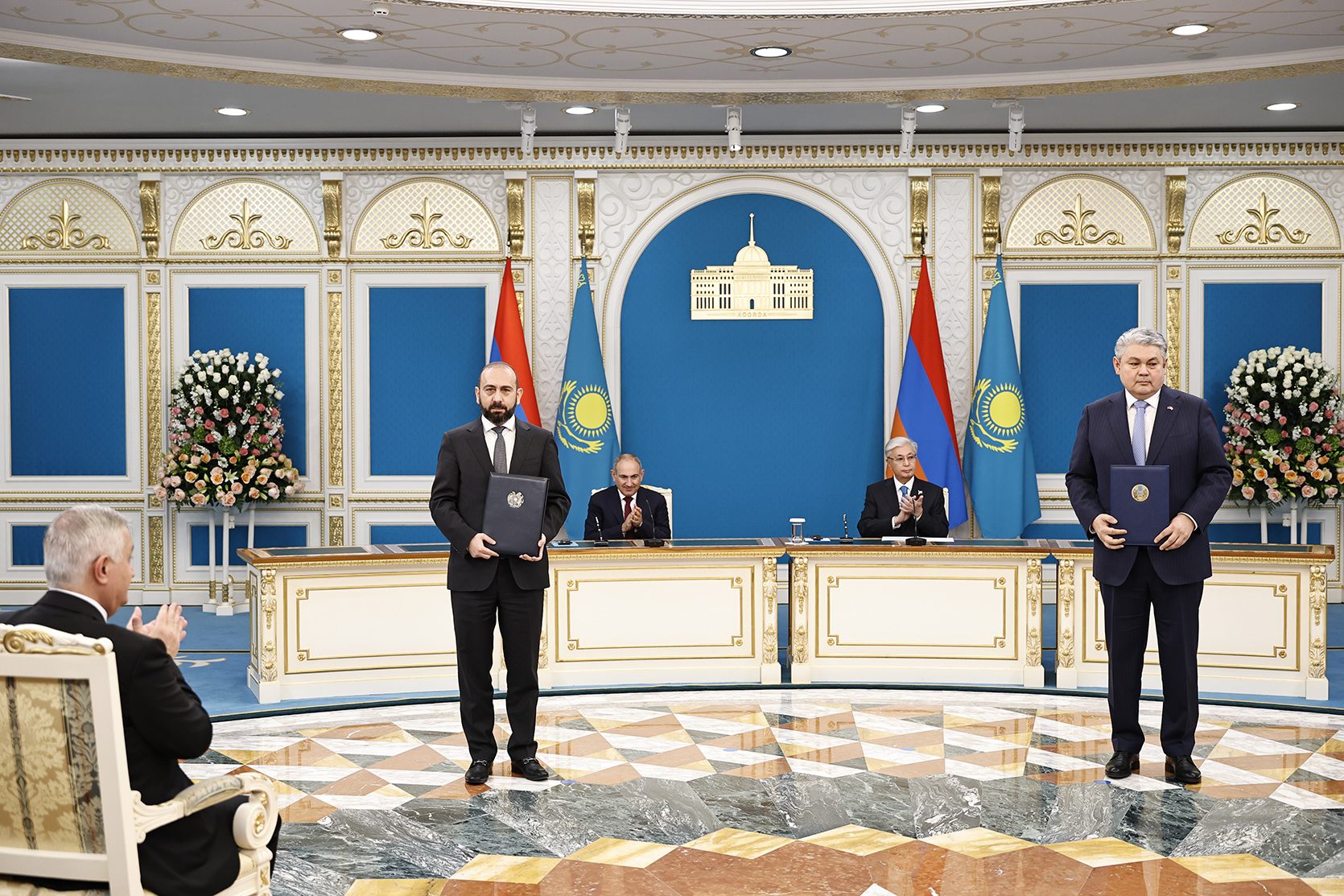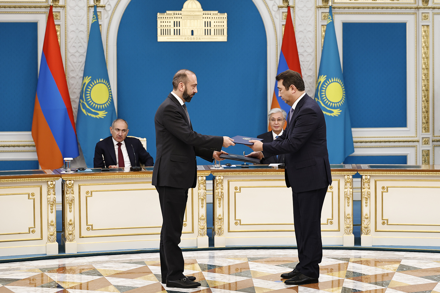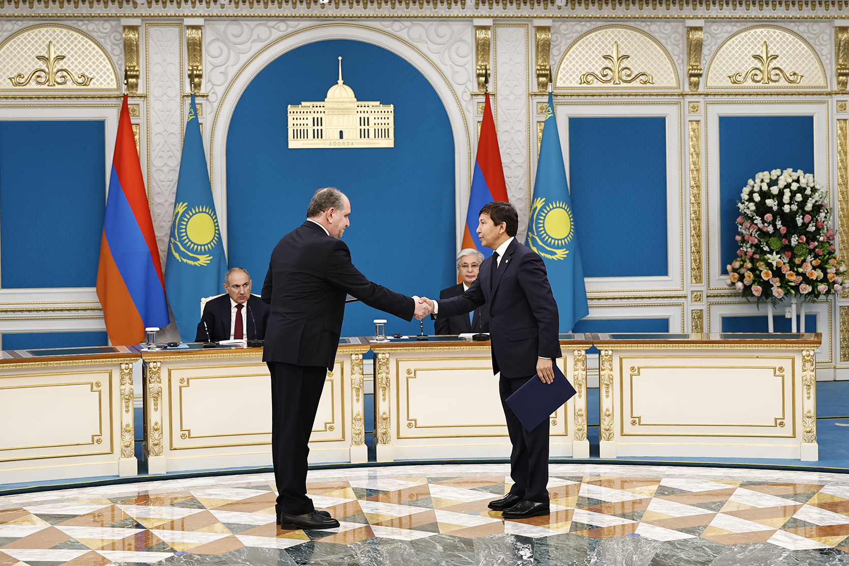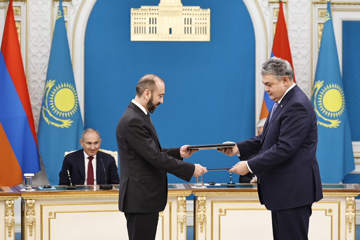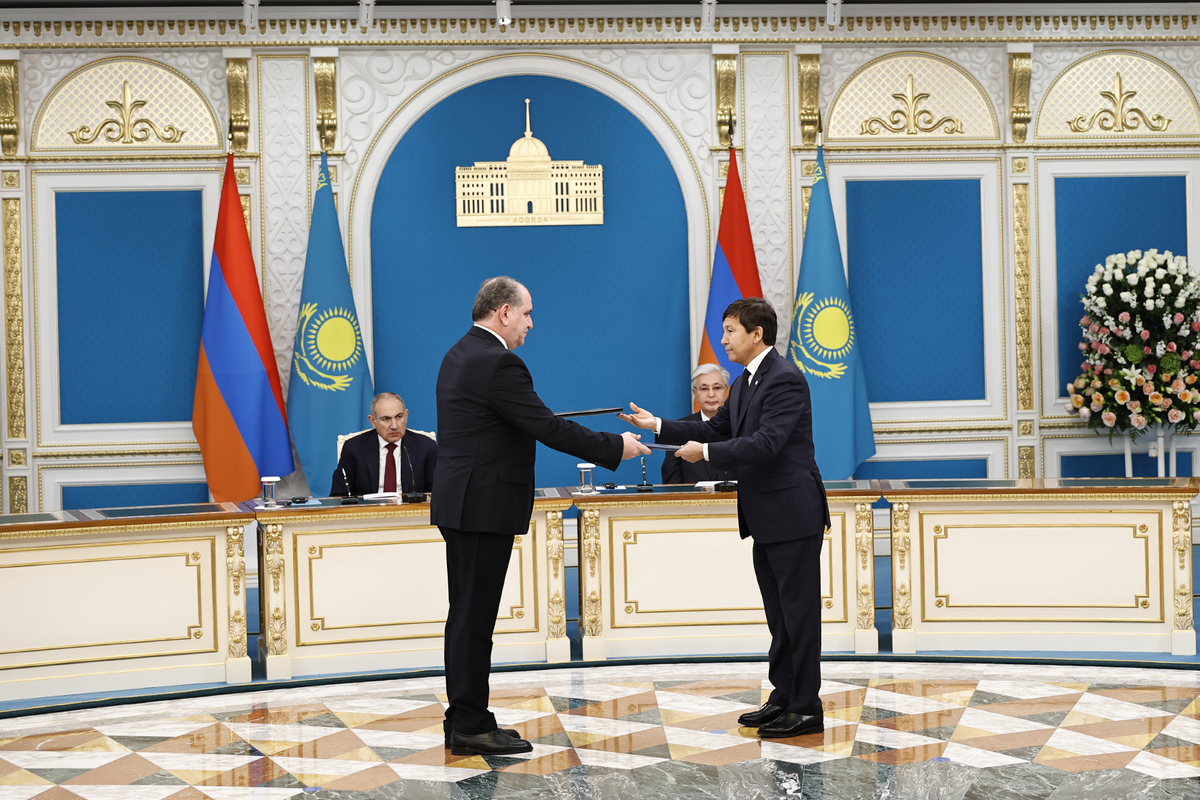 The governments of the Republic of Armenia and the Republic of Kazakhstan exchanged the Agreement on the Transfer, Use, Protection and Security of Classified Information, the Agreement on the Mutual Provision of Land for the Construction of Buildings of Diplomatic Representations of the Republic of Kazakhstan in the Republic of Armenia and the Republic of Armenia in the Republic of Kazakhstan, as well as the Roadmap for Trade and Economic Cooperation for 2026-2030.