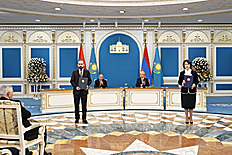 Honorable Mr. Prime Minister, you are known to the international community as a strong leader, far-sighted leader and politician. Taking into account your role, today I have awarded Honorable Prime Minister Nikol Pashinyan with the highest award of the Republic of Kazakhstan. This step is a sign of friendship between our countries, as well as evidence that we strive to further deepen our mutual ties.