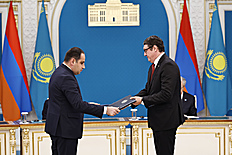 Next, in the presence of the leaders of the two countries, a ceremony of exchanging documents between Armenia and Kazakhstan took place.