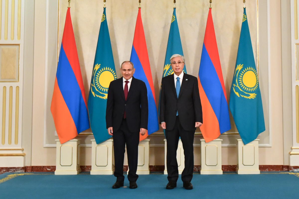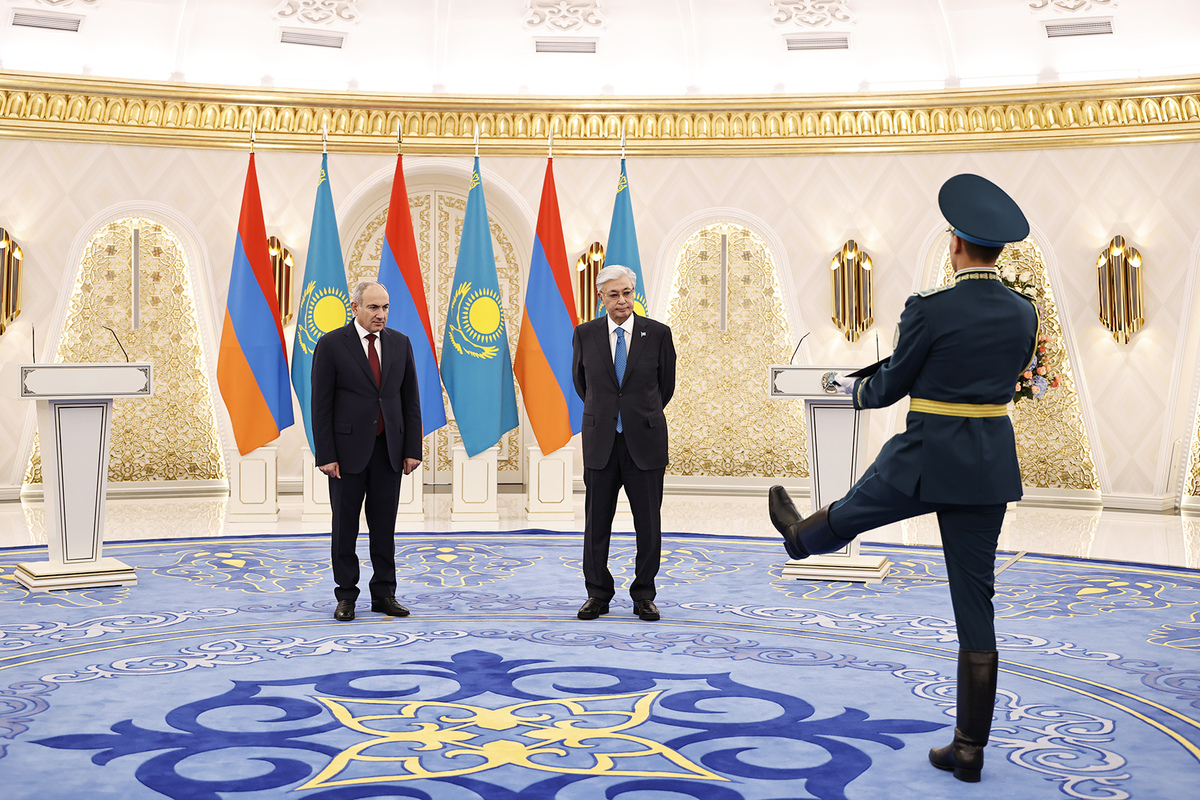 President of Kazakhstan Kassym-Jomart Tokayev - Honorable Prime Minister, let me thank Prime Minister of the Republic of Armenia Nikol Pashinyan for accepting my invitation and paying an official visit to Kazakhstan. Today’s visit is of particular importance, of historical significance, and during today’s discussions we will touch upon all our goals. Armenia is a reliable and trustworthy partner for Kazakhstan, and our relations are based on mutual friendship and mutual respect. Kazakhstan has always been a close and friendly country for Armenia and the Armenian people, and we highly appreciate the history, rich cultural heritage and traditions of the Armenian people. We build our multilateral cooperation on these values.