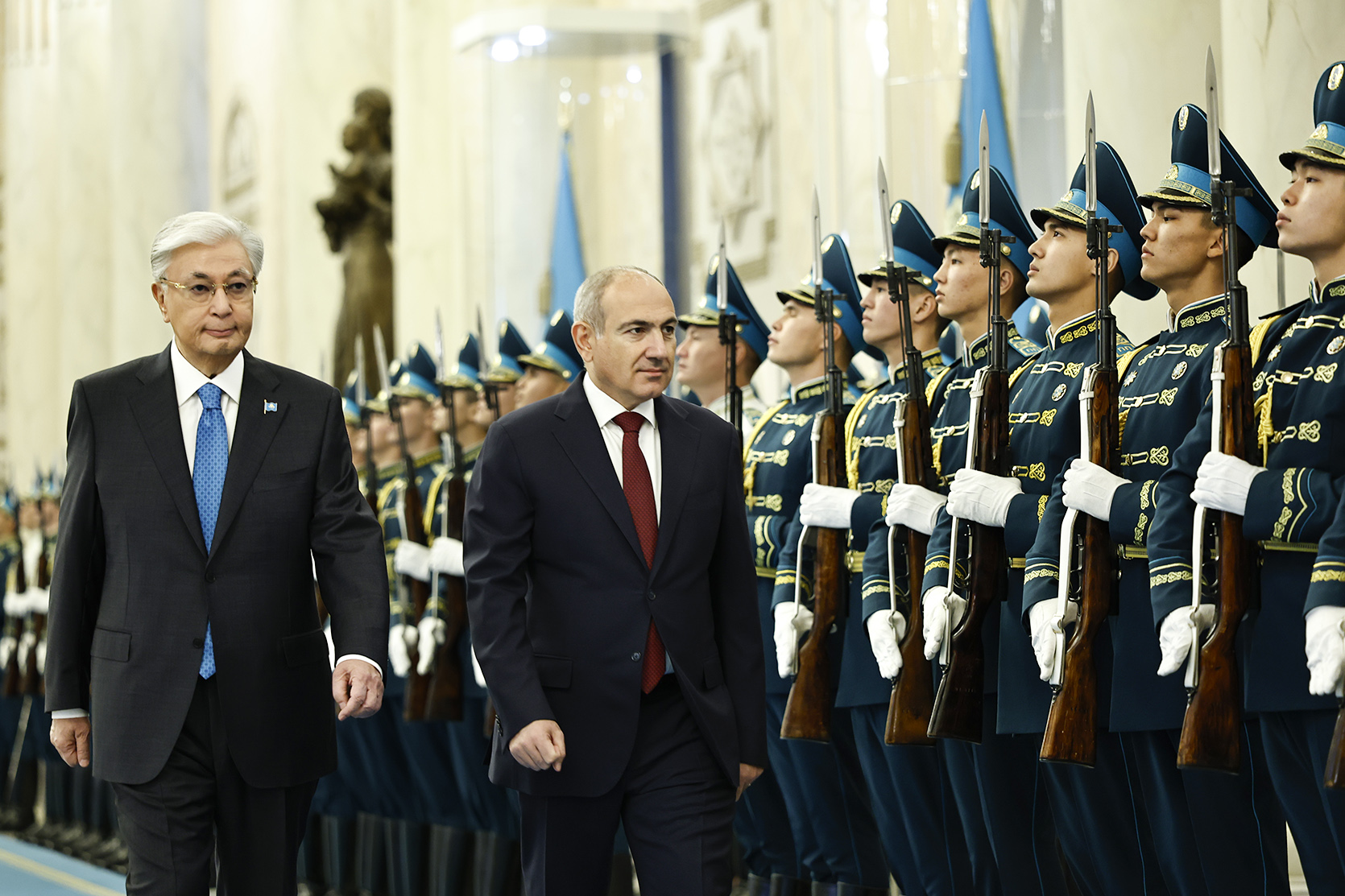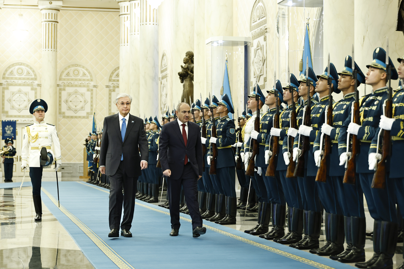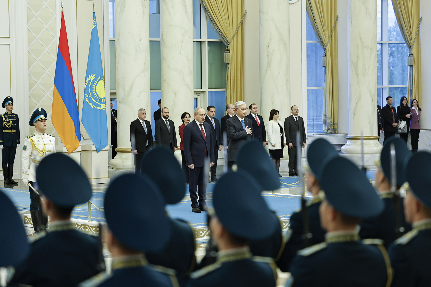The official visit of the Prime Minister of the Republic of Armenia Nikol Pashinyan to the Republic of Kazakhstan has begun. First, the official welcoming ceremony of the Prime Minister of the Republic of Armenia was held at the Akorda Residence, during which Nikol Pashinyan and the President of Kazakhstan Kassym-Jomart Tokayev welcomed the delegations of the countries, and the national anthems of Armenia and Kazakhstan were performed.