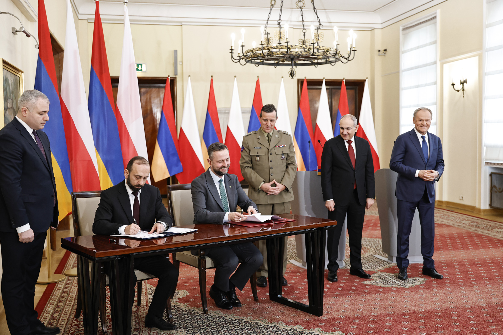 In the presence of Prime Minister Nikol Pashinyan and Polish Prime Minister Donald Tusk, an agreement on military-technical cooperation between the Republic of Armenia and the Republic of Poland was signed by the Minister of Foreign Affairs of the Republic of Armenia Ararat Mirzoyan and the Deputy Prime Minister, Minister of National Defense of Poland Władysław Kościńska-Kamiś.