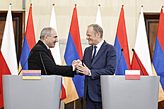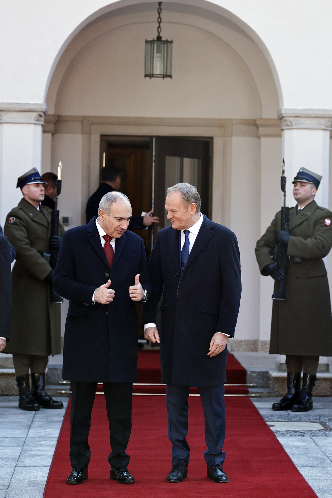 Polish Prime Minister Donald Tusk – Mr. Prime Minister, my friend, my good friend Nikol Pashinyan, we are very happy for our meeting in Warsaw today, precisely on the very day when Poland established diplomatic relations with Armenia on February 26, 1992.