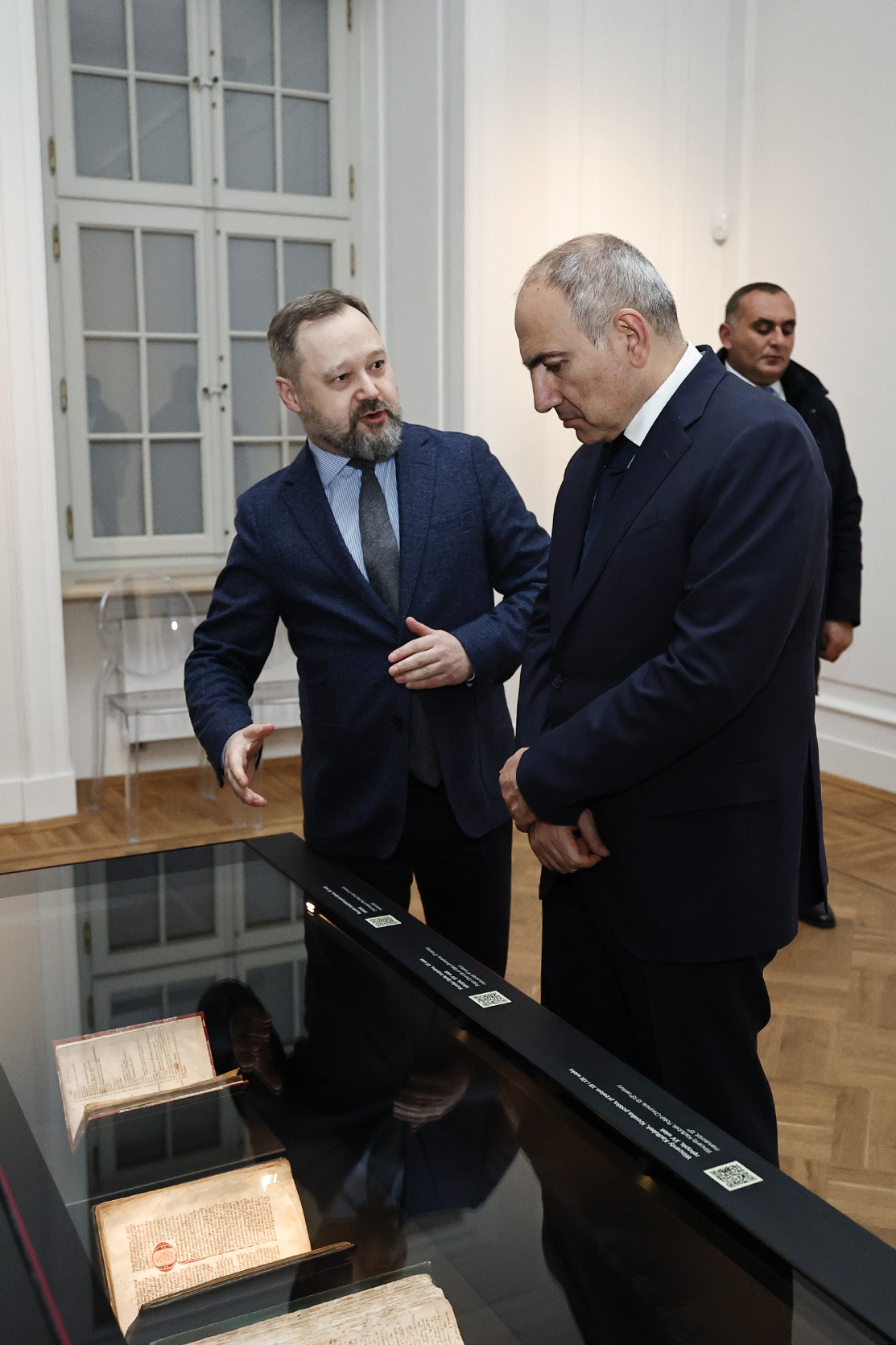 Prime Minister Nikol Pashinyan visited the National Library of Poland located in the Palace of the Republic in Warsaw. During the tour, accompanied by Director Tomasz Makowski, the Prime Minister got acquainted with the library’s heritage.