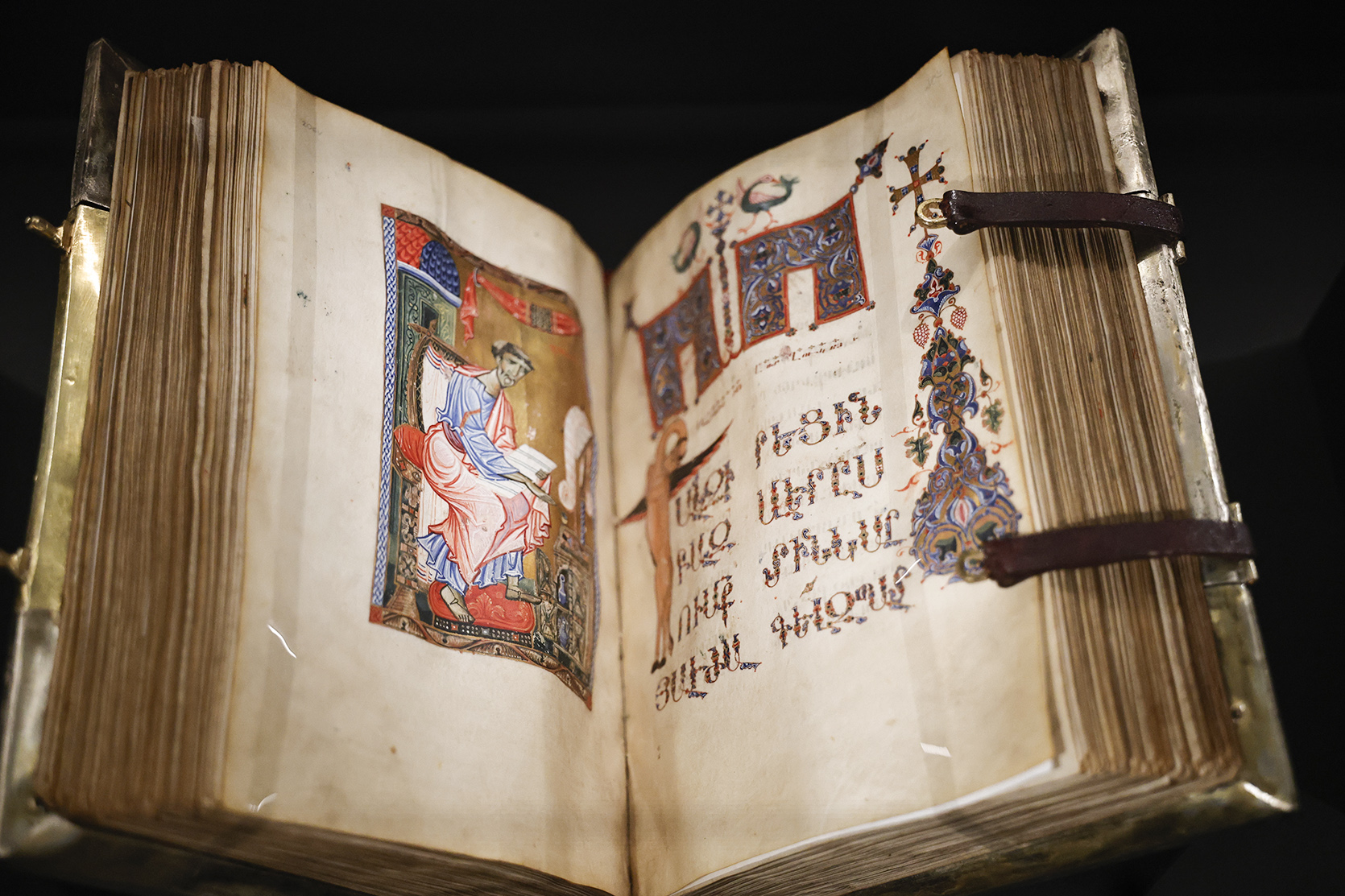 The Skewra Gospel, a parchment manuscript from 1197, is on permanent display at the National Library, the illustrations of which belong to Grigor of Skewra, and the book was commissioned by Nerses Lambronatsi. According to the manuscript’s memoirs, it was created in 647 of the Armenian calendar, that is, in 1198/1199, during the reign of King Levon I of the Rubinyan dynasty and Catholicos Grigor V Apirat. It was noted that in 1997, after confirming the Armenian identity of the Gospel and obtaining the necessary permits, the manuscript was transferred to the Ordinary of the Armenian Rite in Poland, Cardinal Józef Glemp. In 2006, the Polish Archbishop Primate Glemp, responding to the request of representatives of the Polish Armenian community, signed an agreement with the Director of the National Library, according to which the Gospel was provided for safekeeping to the library and is currently on display.
