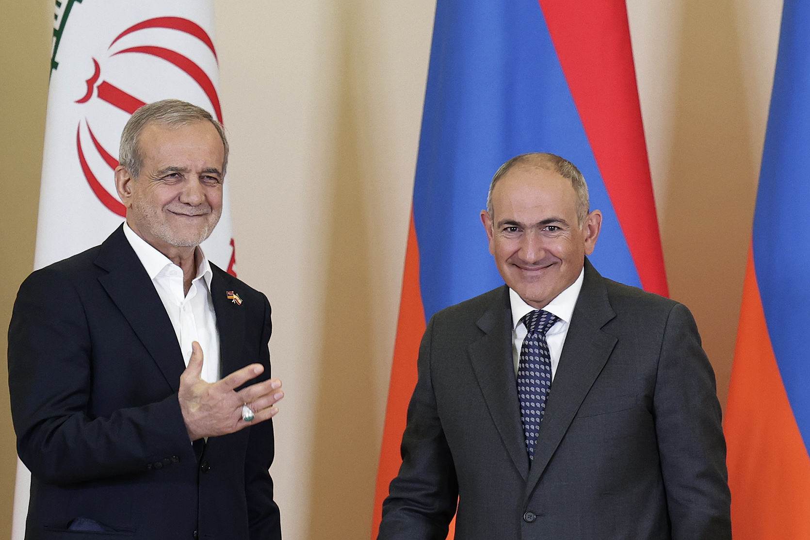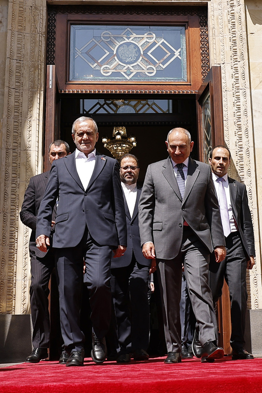 Armenian Prime Minister Nikol Pashinyan and Iranian President Masoud Pezeshkian made statements for media representatives.