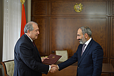 The President of Armenia congratulated Nikol Pashinian and said, “I wish you to form a government as soon as possible and engage in the resolution of the problems which our state, government, the entire nation and the country – the Republic of Armenia - are facing. I wish you all the best and success.”