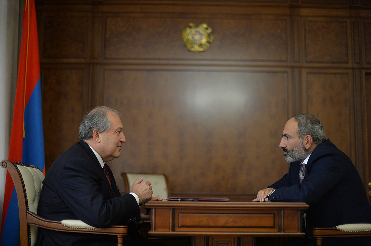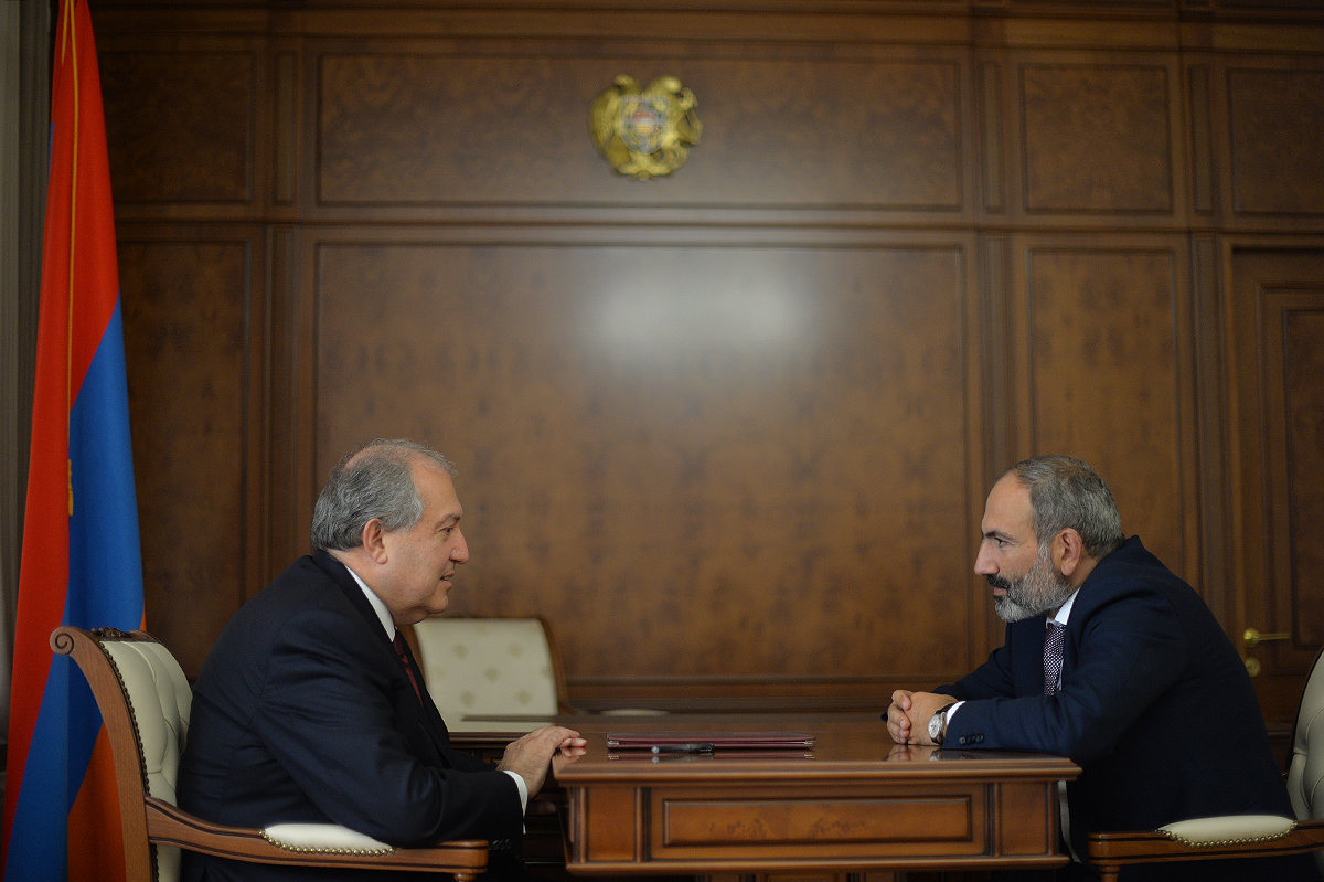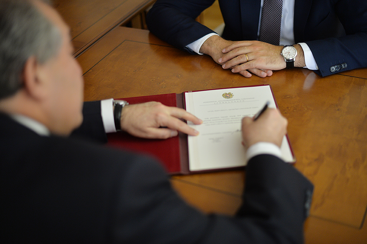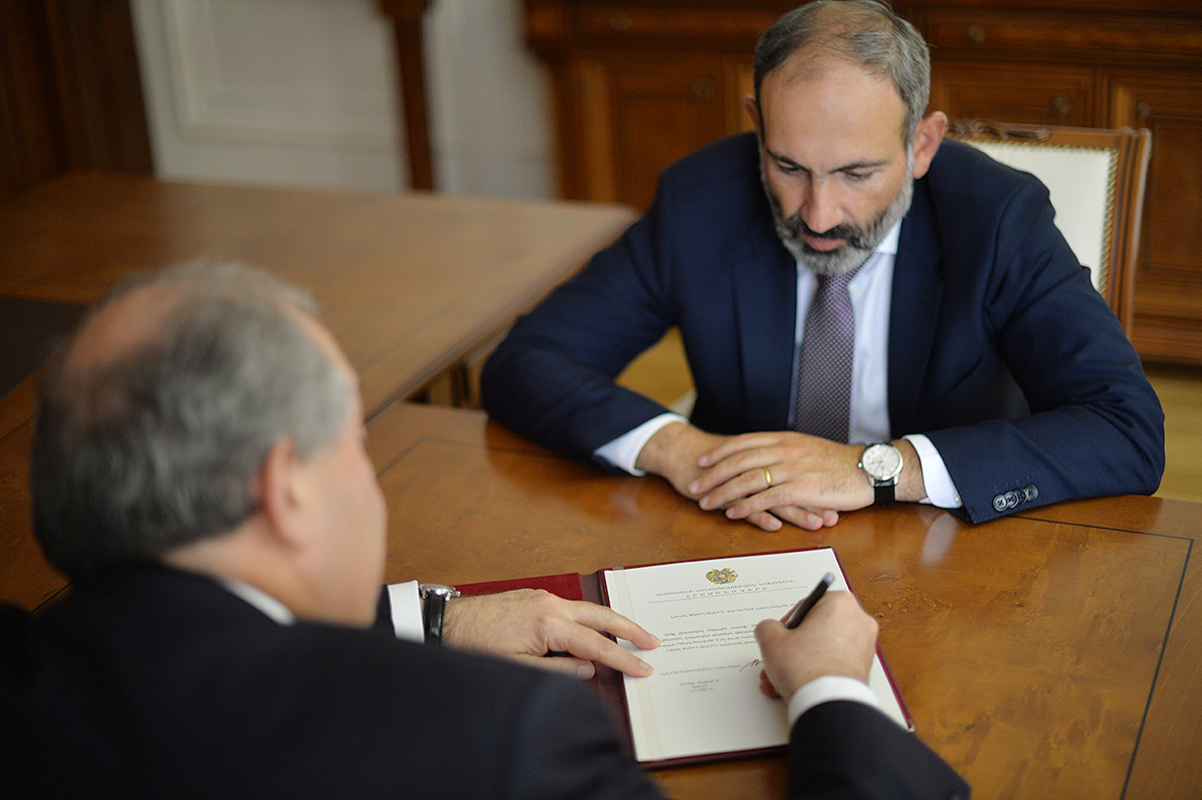 Guided by the May 8, 2018 decision of the National Assembly on electing Nikol Pashinian the Prime Minister of Armenia, President Armen Sarkissian signed today a decree on the appointment of Nikol Pashinian the Prime Minister of the Republic of Armenia. Today, at the Presidential Palace, there took place the first meeting between the President and the newly elected Prime Minister of Armenia.