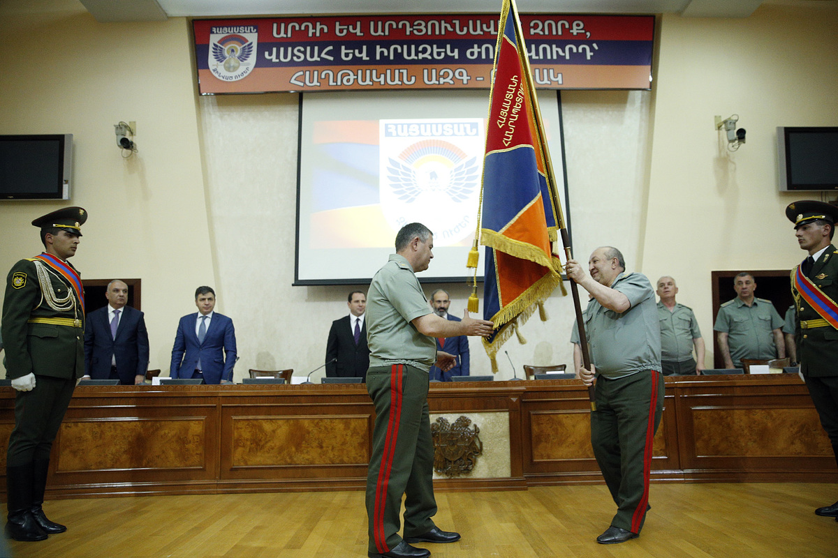 Movses Hakobyan thanked his former colleagues for joint service and cooperation. He wished every success to the newly appointed Chief of General Staff, hopeful that the traditions forged in the Armed Forces would be maintained and developed. Newly appointed Chief of General Staff Artak Davtyan thanked the Prime Minister for confidence and went on to assure that he would try to live up to the task.