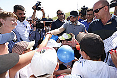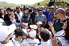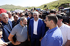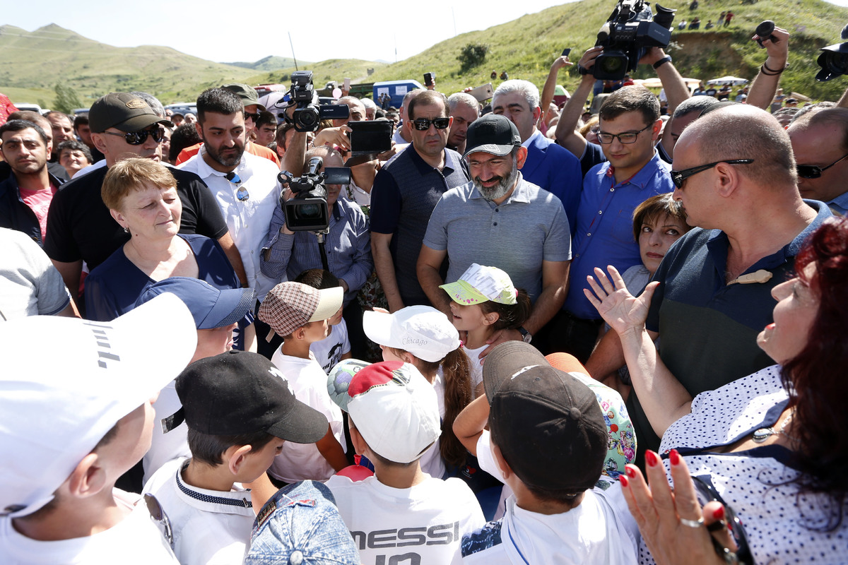 On the way back to Yerevan, the Prime Minister called at Gndevaz to talk with village residents who had gathered on the road to meet him.