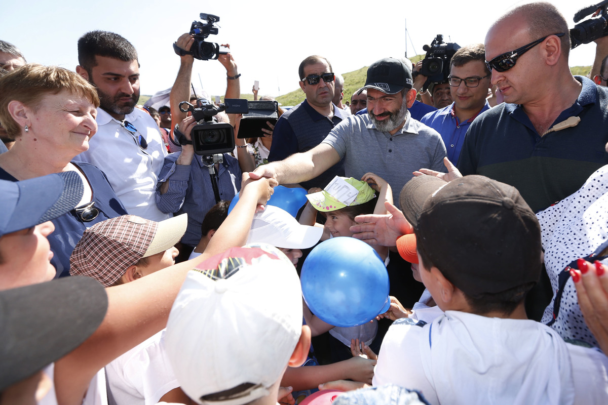 On July 6, Prime Minister Nikol Pashinyan left Kapan for Jermuk. Onboard of an helicopter together with Levon Galstyan, a representative of the Armenian Environmental Front, and Lydian Armenia CEO Hayk Aloyan, the Prime Minister followed the ongoing Amoulsar mine development activities, after which he met with local residents and environmentalists protesting against the exploitation of Amoulsar mine in Kechut.