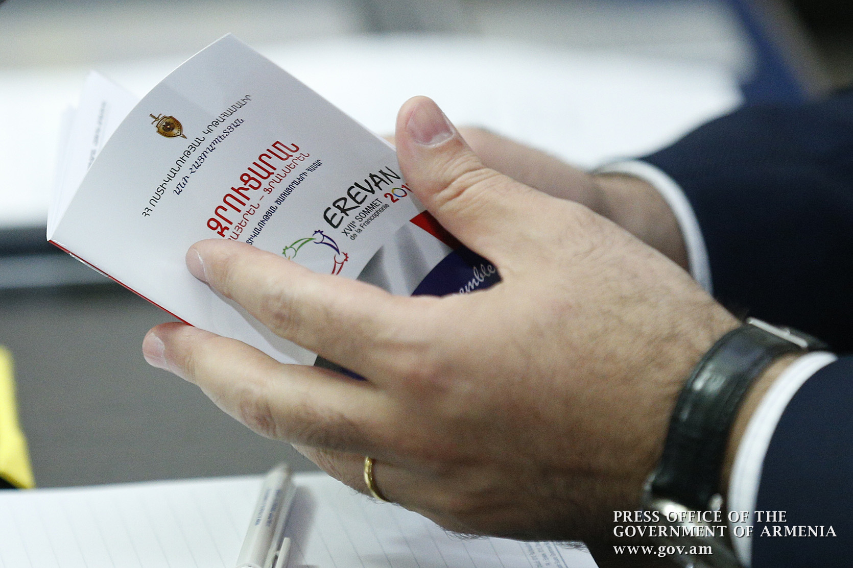 Before proceeding to the agenda, the Premier made the following statement: “You can see the gift offered by the Police of the Republic of Armenia to the Government, namely an Armenian-French phrase-book published ahead of the 17th summit of La Francophonie International Organization to be held in Yerevan. It is a landmark event, and a good opportunity to increase the number of languages we know. I consider that the Armenian citizens should speak a few foreign languages in the new Armenia. The Summit is a good occasion for us to take another step in that direction.”