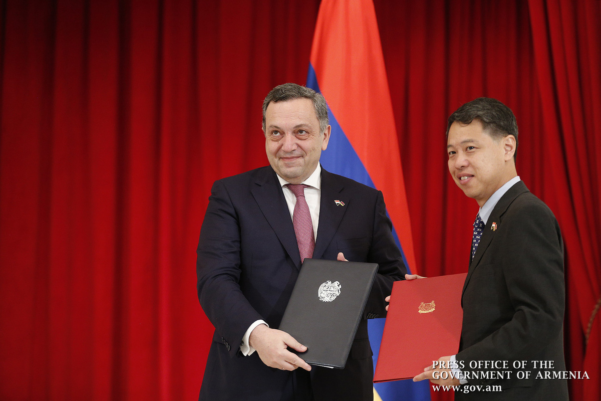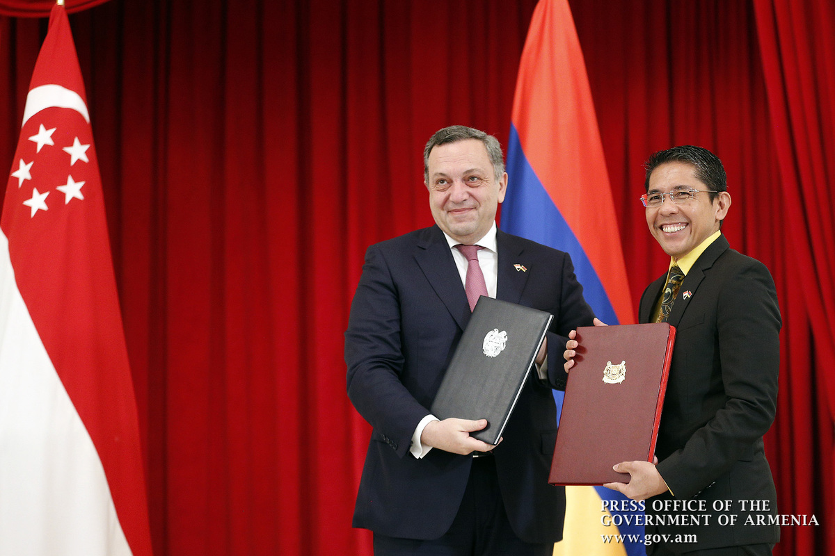 The governments of the Republic of Armenia and the Republic of Singapore signed an agreement on avoidance of double taxation and preventing tax evasion. The document was signed by Deputy Minister of Foreign Affairs of the Republic of Armenia Avet Adonts and Senior Minister of Defense and Foreign Affairs of Singapore Maliki Osman.