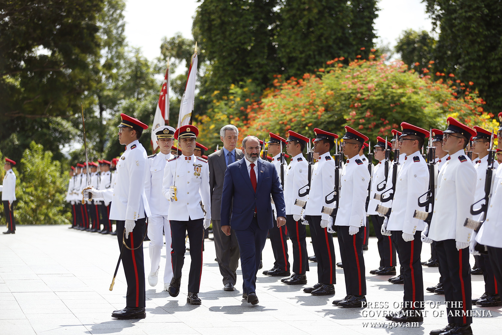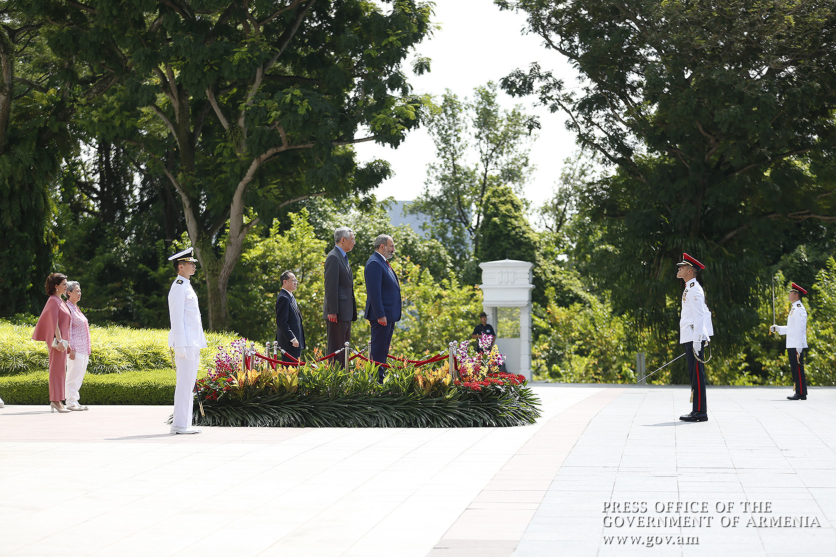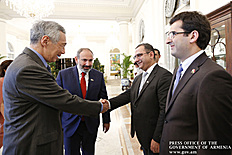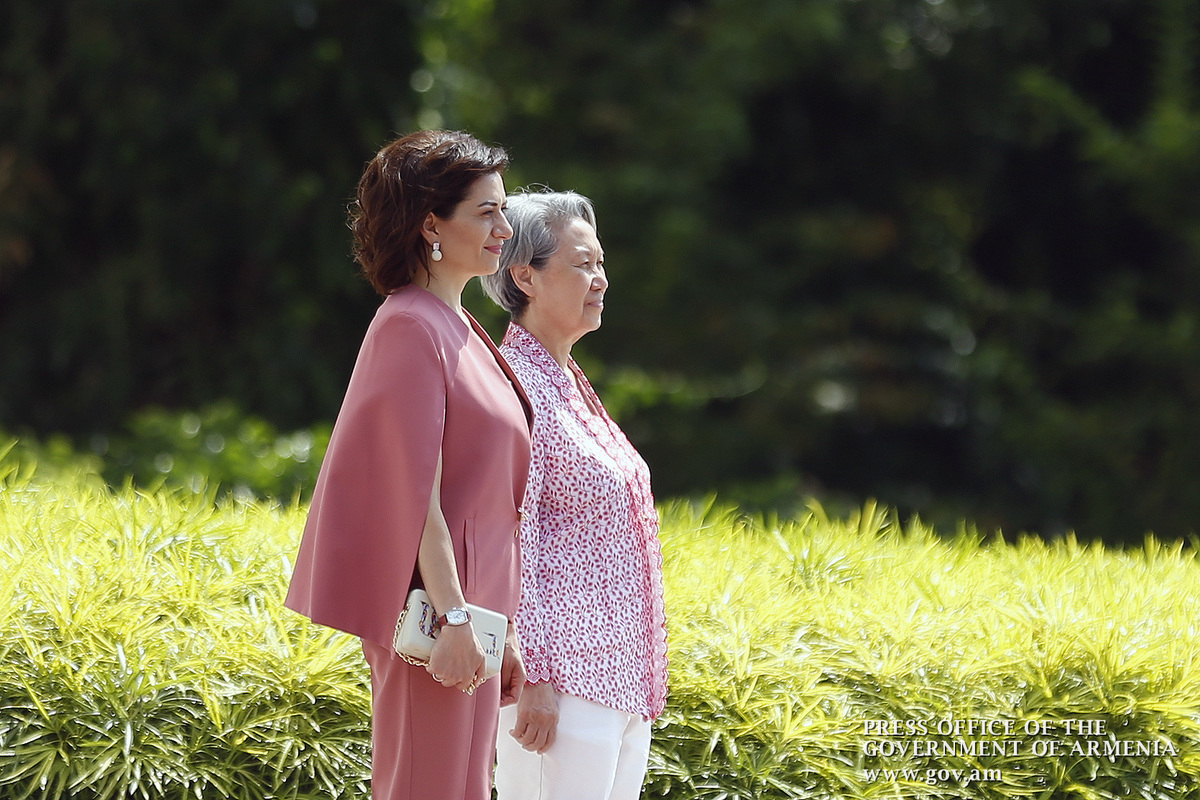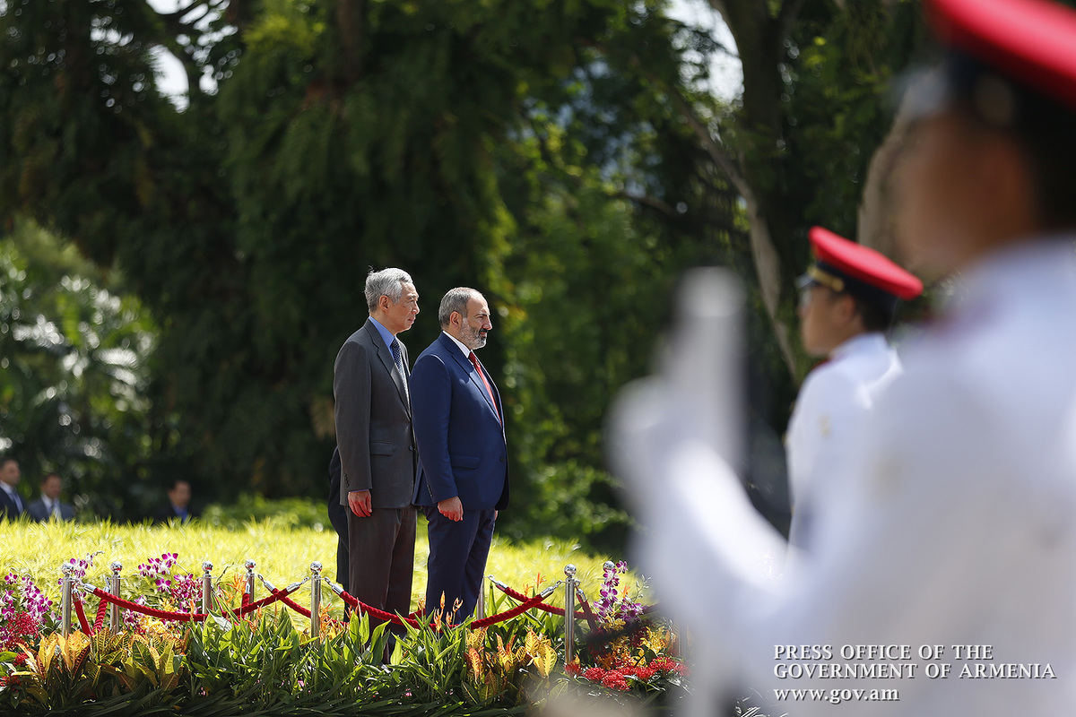 An official welcome ceremony for Prime Minister Nikol Pashinyan and Mrs. Anna Hakobyan was held at Istana, the Government Residence in Singapore. The Prime Minister and Mrs. Anna Hakobyan were welcomed by Prime Minister of Singapore Lee Hsien Loong and Mrs. Ho Chin. The national anthems of Armenia and Singapore were played, after which the two prime ministers and their spouses greeted the delegation members.