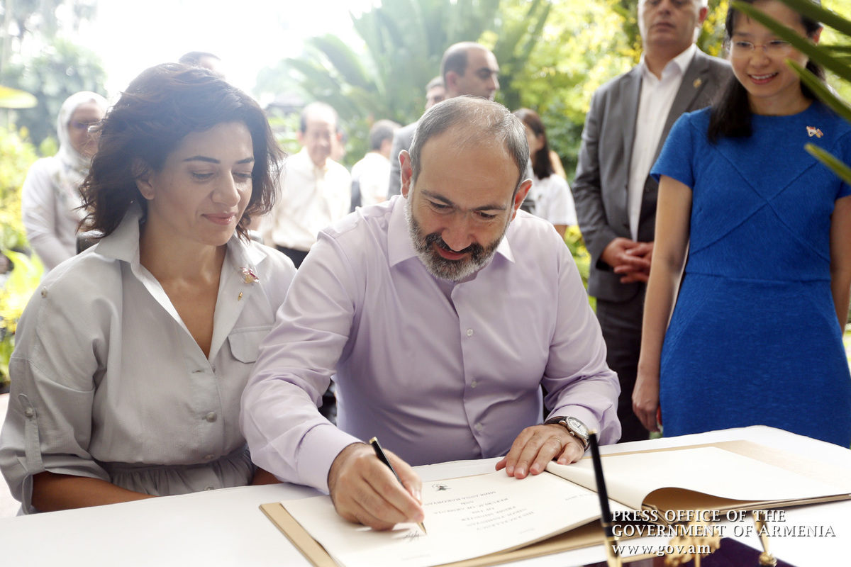 Pashinyan signed the Book of Honorary Guests, after which the Premier and Mrs. Anna Hakobyan toured the Gardens.