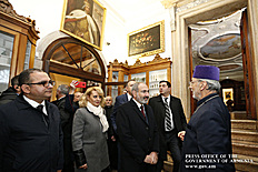 The Head of Government toured the site, where Pontifical Delegate of the Mekhitarist Congregation, Prelate of the Armenian Catholic Church in Turkey Archbishop Levon Zekian briefed him on the consequences of the latest flood in Venice. According to him, the ground floors were filled with water, the south gate was ruined and some manuscripts and ornaments were damaged in the disaster. A sailboat called Armenia collided with a berth, but the Congregation did not suffer serious cultural damage. The scale of the damage is being estimated at this point of time.