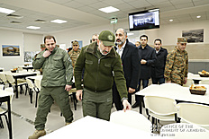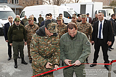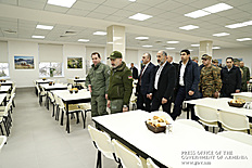 Prime Minister Nikol Pashinyan today joined Defense Minister David Tonoyan and Chief of the General Staff of the Armed Forces Artak Davtyan to attend the opening of a new-built canteen in Army Unit N. Earlier, the Premier was shown the military unit’s new multifunctional rolling stock.