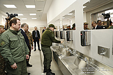 The Prime Minister got acquainted with the menu, talked to servicemen and had dinner with them. Modern kitchen equipment is installed, and the option of automated self-service has been introduced at the canteen. Servicemen are offered a variety of dishes, in addition to salads, fruits, sweets and juices.