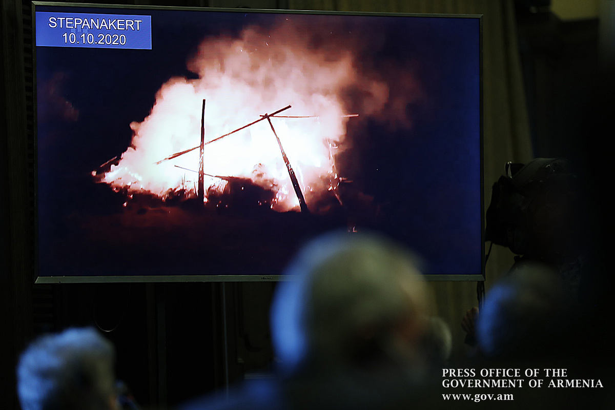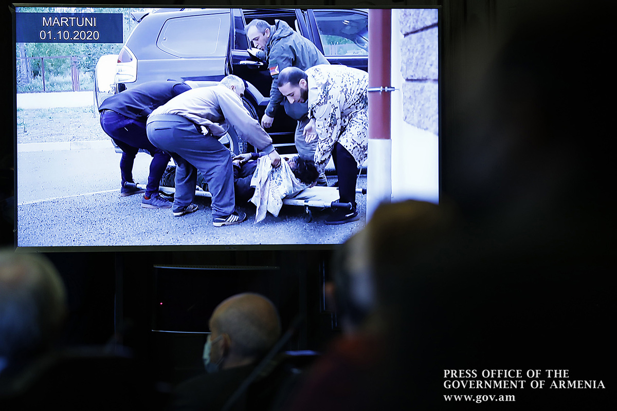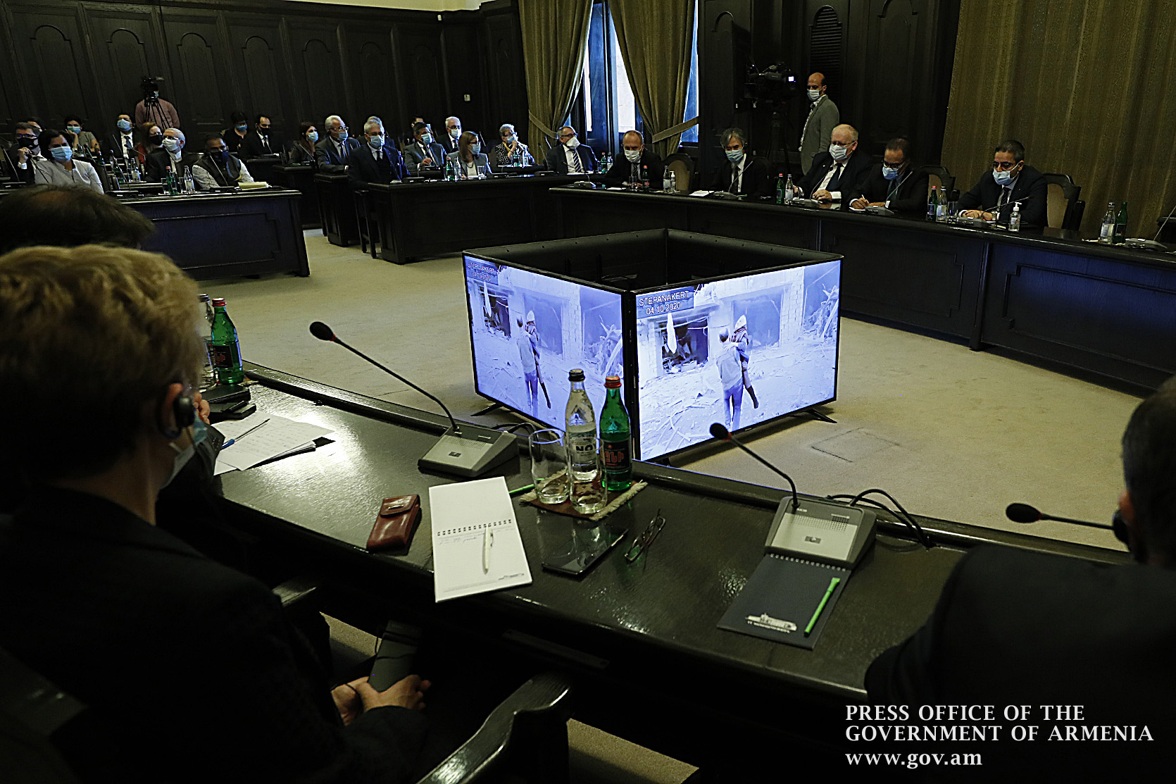 After watching the video footages, the Armenian Prime Minister called the attendees’ attention to the fact that the video featured neither military infrastructure nor any military personnel on the ground, which evidences that this was a clearly deliberate strike against peaceful settlements and civilian infrastructure.