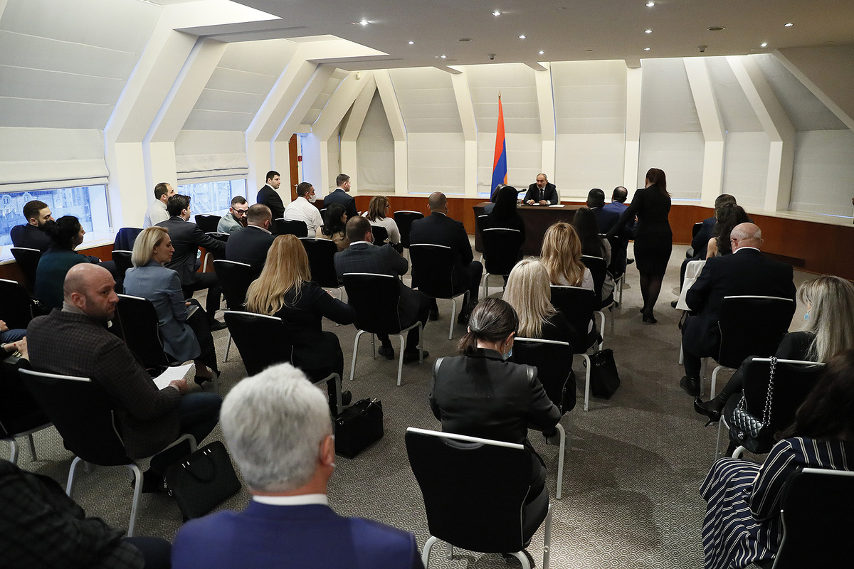 Prime Minister Nikol Pashinyan met with several dozen members of the Association of Armenian Lawyers in Moscow. Greeting the audience, the Premier said, “You know that we are going through a very challenging period when there are great concerns and questions. This meeting is especially important for you, I mean for the Armenians in Moscow, Russia and worldwide, to raise questions looking into my eyes and for me to be able to answer your questions.”