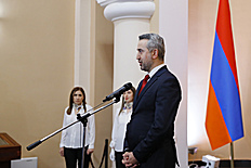 The manuscript was handed over to Matenadaran by Minister of Education, Science, Culture and Sports, President of Matenadaran Board of Trustees Zhanna Andreasyan.