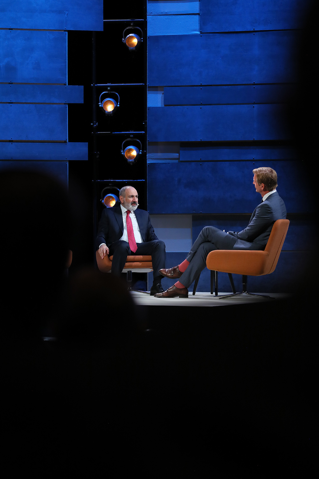 Within the framework of the "Copenhagen Democracy Summit", the Prime Minister answered the questions of moderator, Executive Editor of Politico in Europe Gordon Repinski.