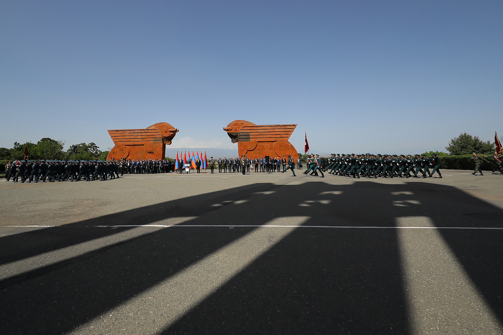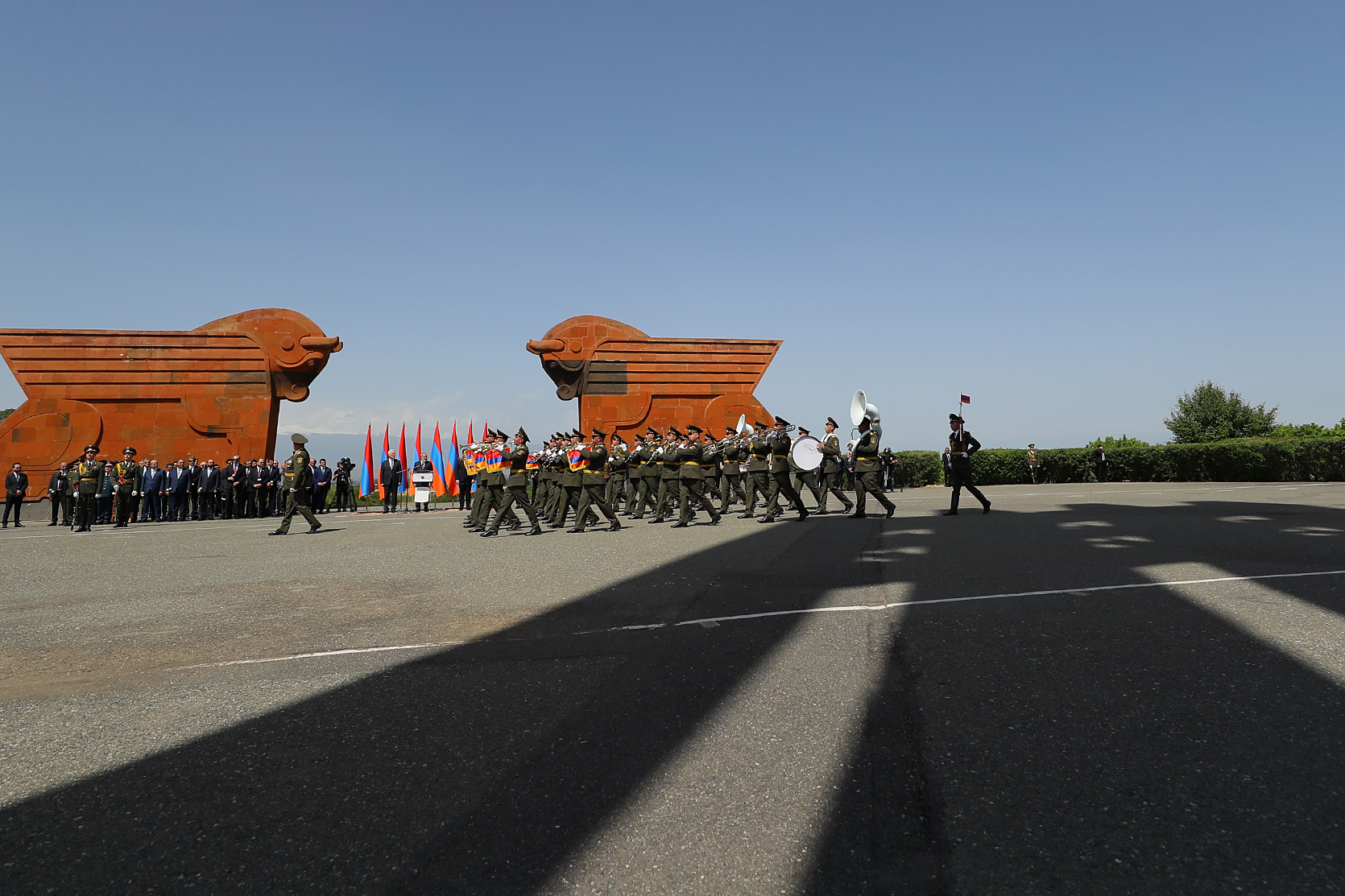 Next, the national anthem of the Republic of Armenia was performed and a festive march took place.