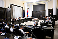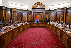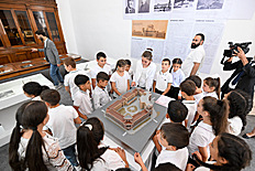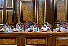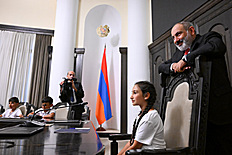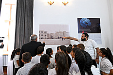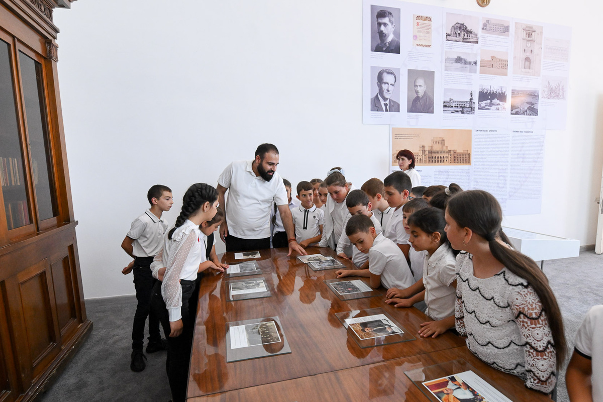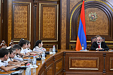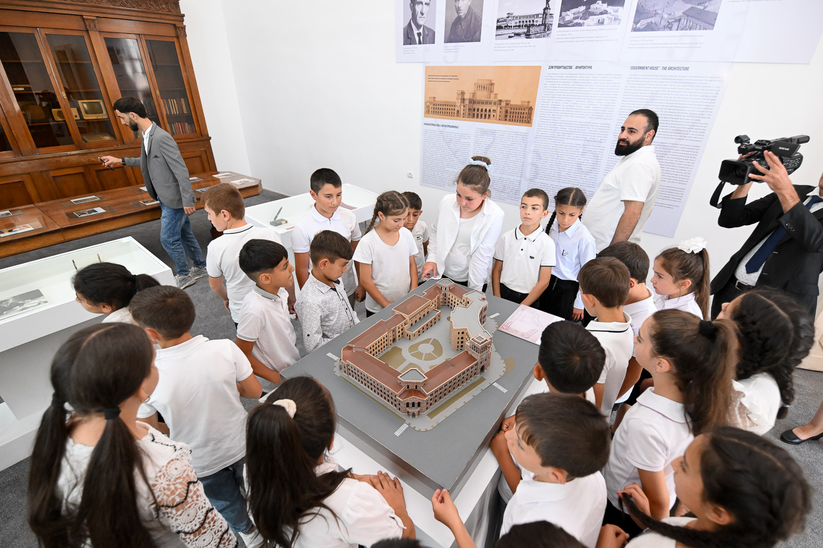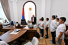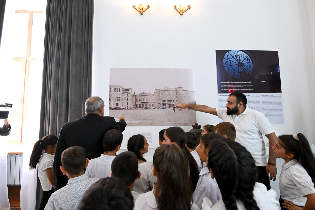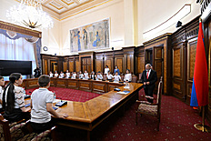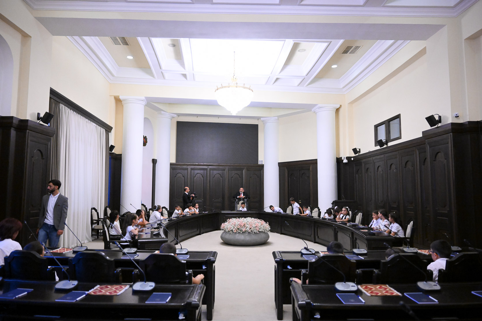 Nikol Pashinyan greeted the students, talked and answered their questions. Then, the Head of the Government invited the students to his office, and then toured the Government building. The students also visited in the main clock hall where exhibits representing the history of the Government are kept.
