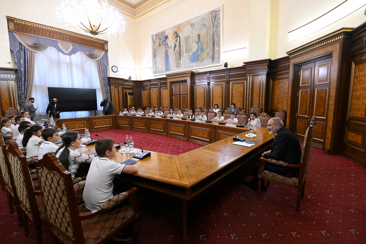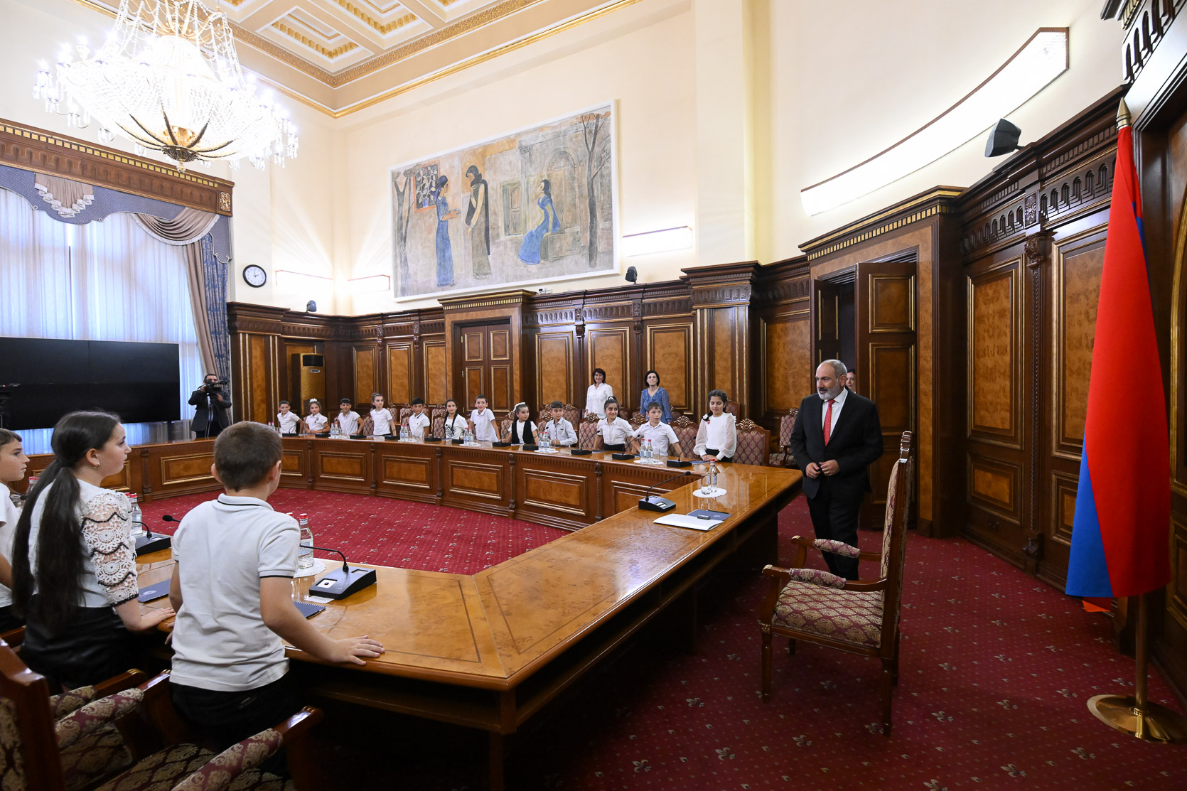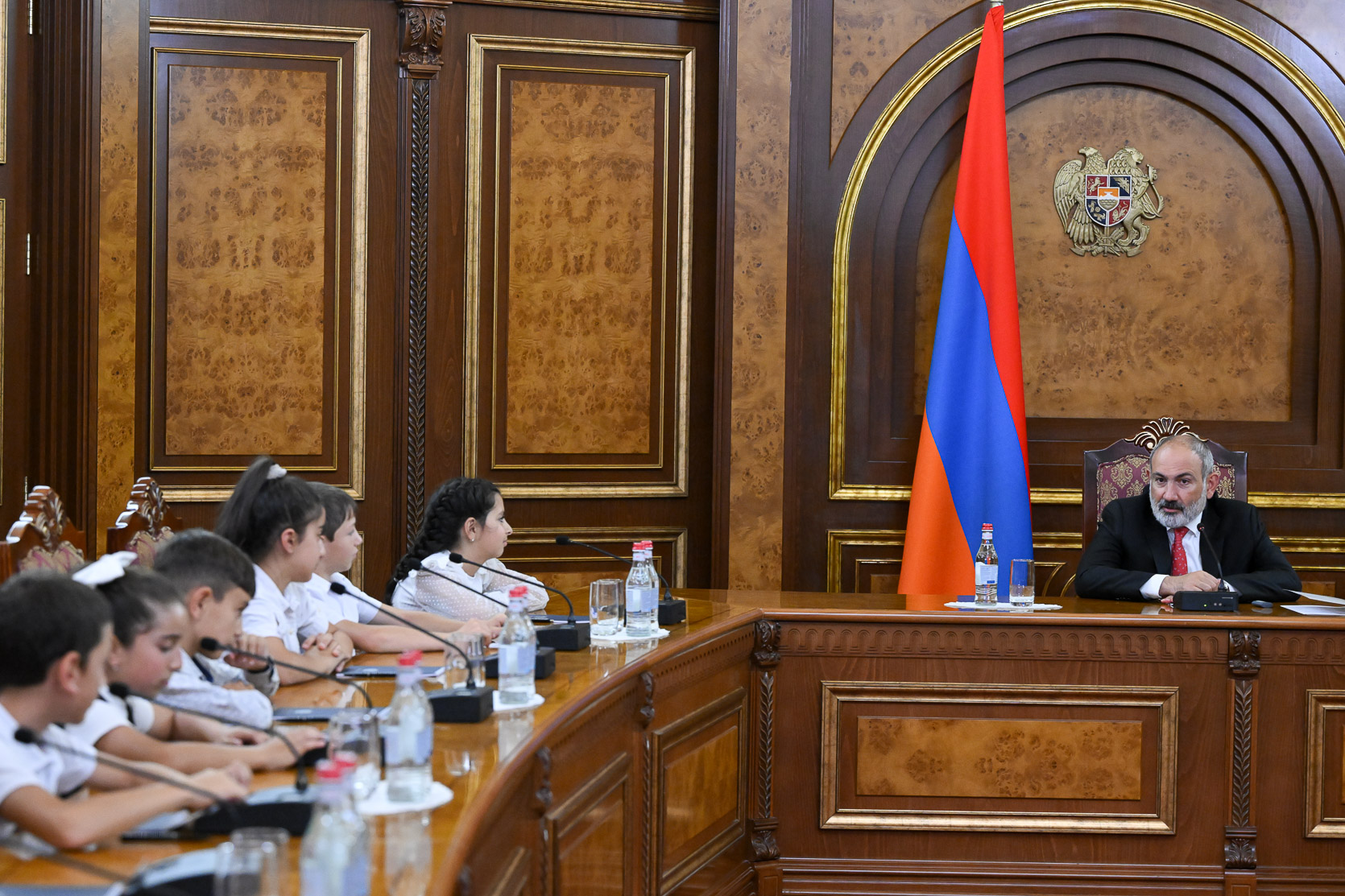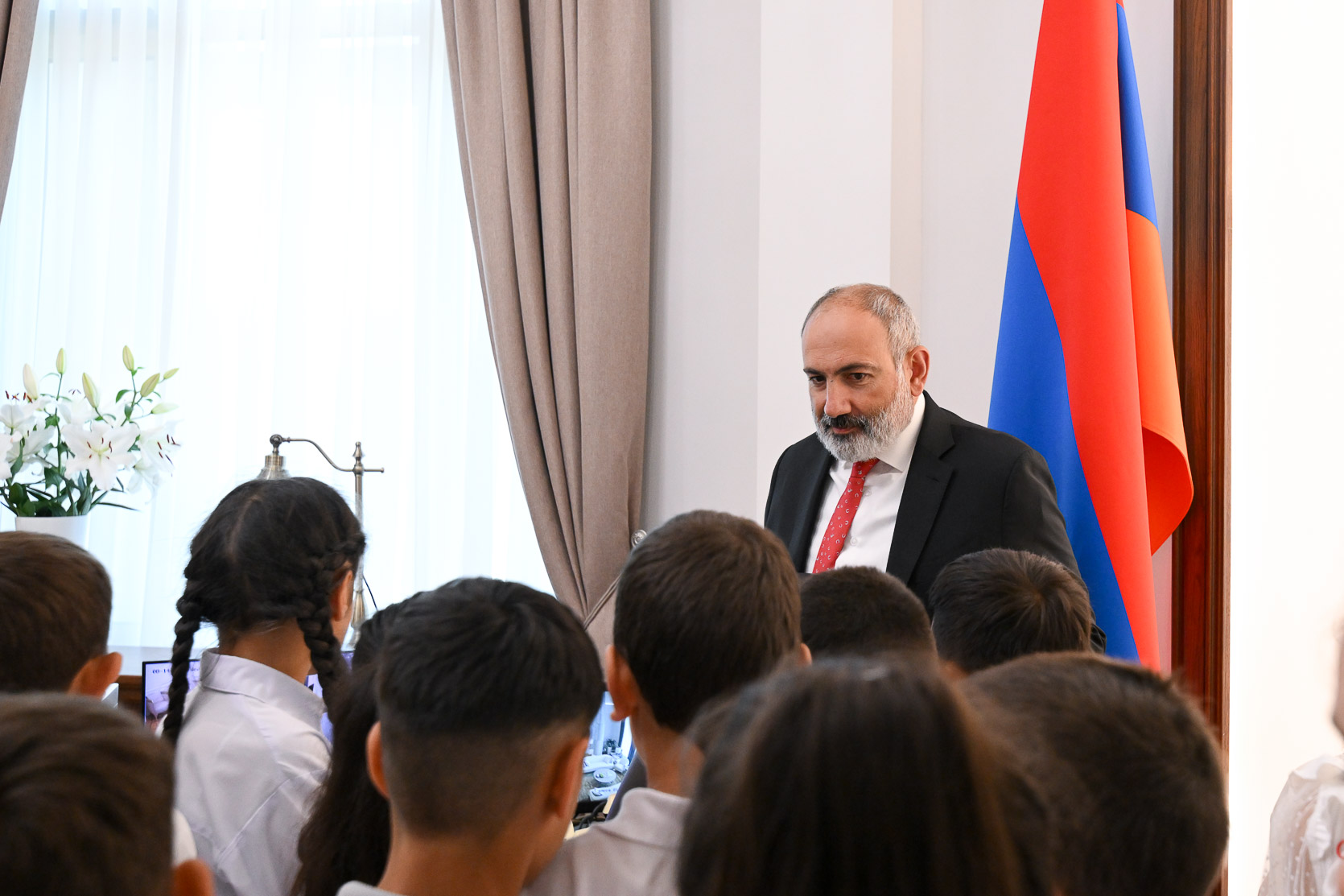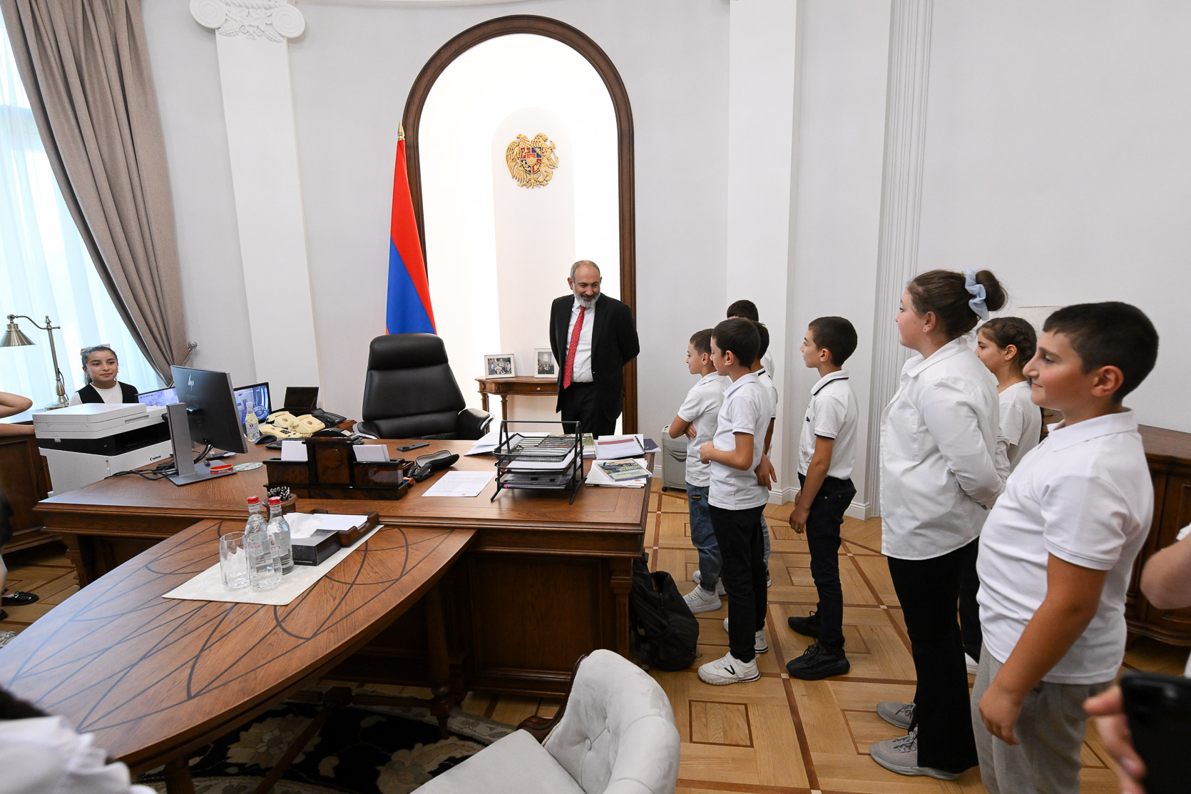 Prime Minister Nikol Pashinyan hosted students of the 4th "A" and "B" grades of the secondary school named after Matevos Madatyan of Sarnaghbyur village, Shirak region, at the latter's request.