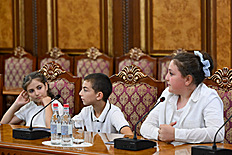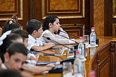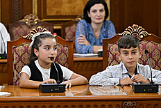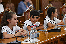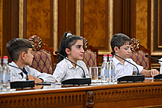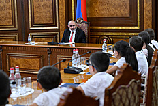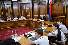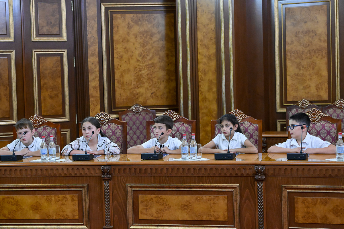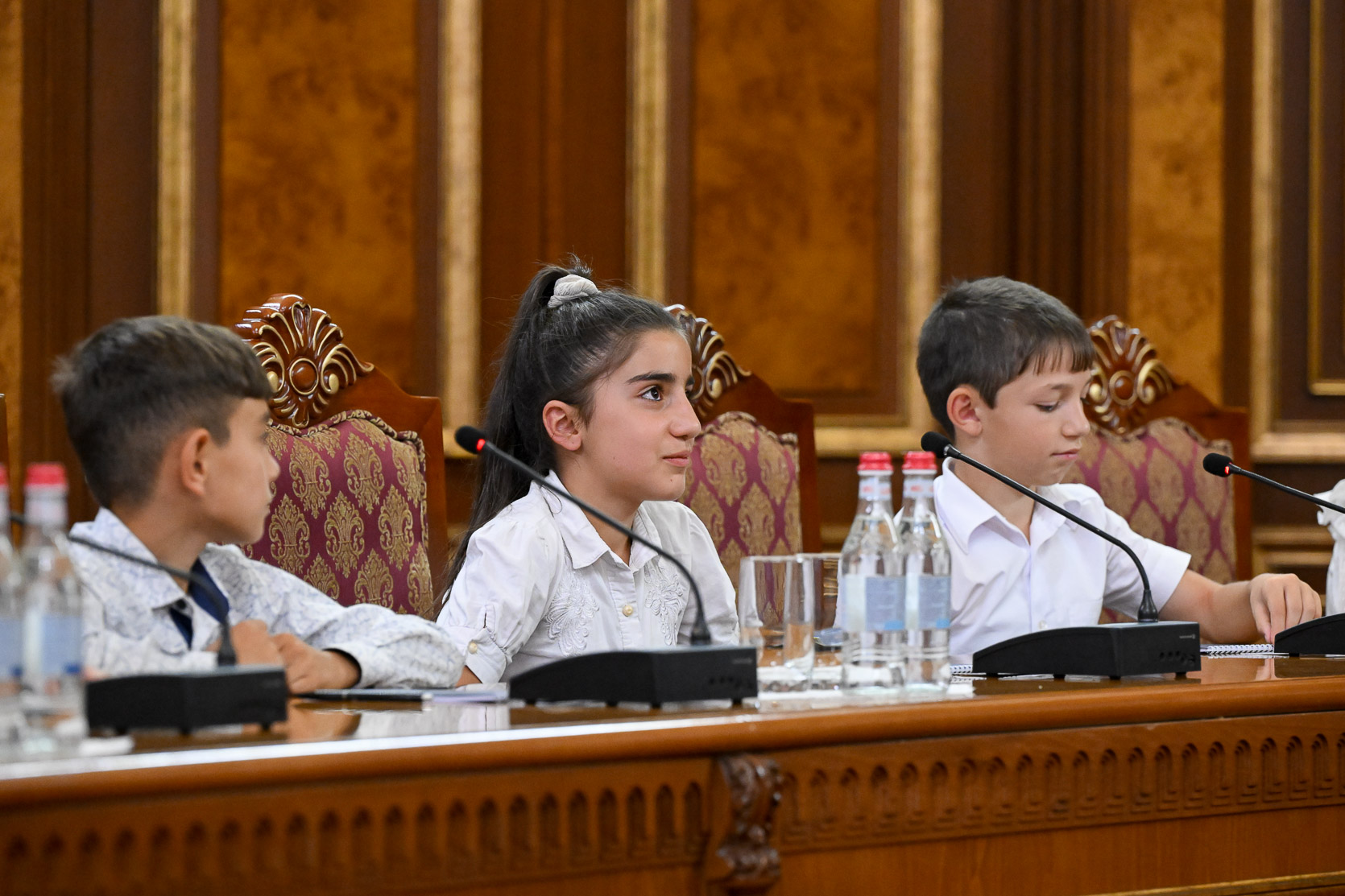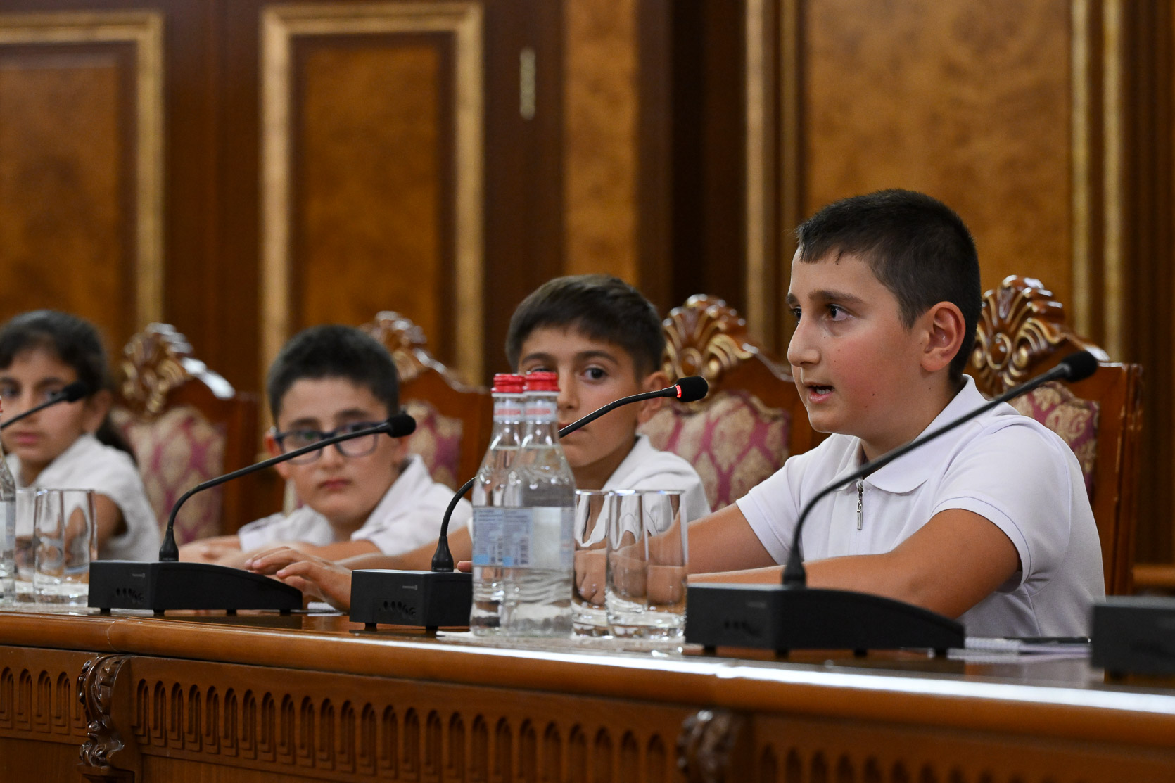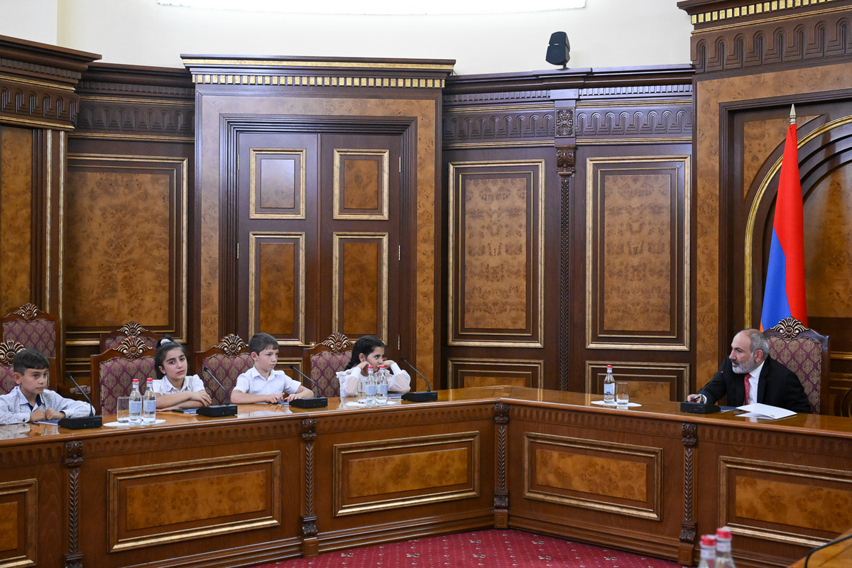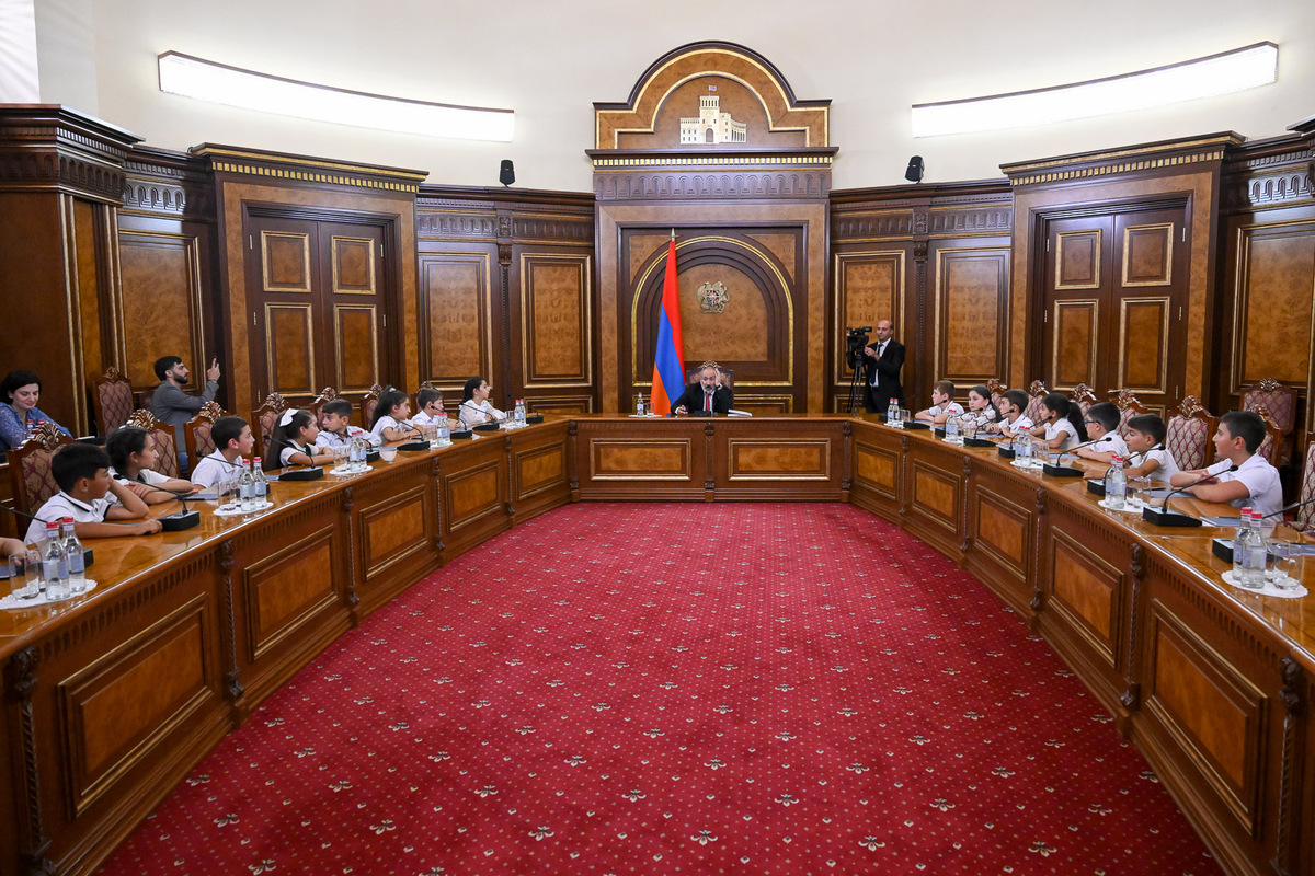 Prime Minister Nikol Pashinyan hosted students of the 4th "A" and "B" grades of the secondary school named after Matevos Madatyan of Sarnaghbyur village, Shirak region, at the latter's request.