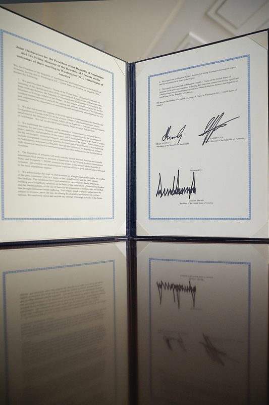 During the trilateral meeting between Prime Minister of the Republic of Armenia Nikol Pashinyan, President of the United States of America Donald Trump, and President of the Republic of Azerbaijan Ilham Aliyev at the White House, a joint Declaration was signed by the President of the Republic of Azerbaijan, the Prime Minister of the Republic of Armenia, and the President of the United States of America on the results of the meeting held in Washington, D.C., the capital of the United States of America.