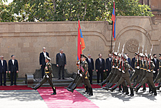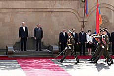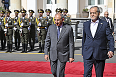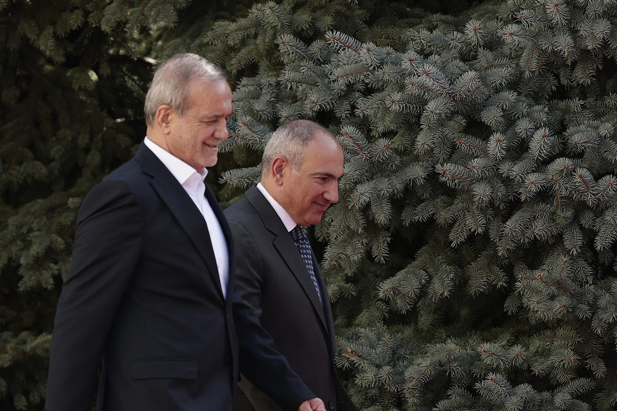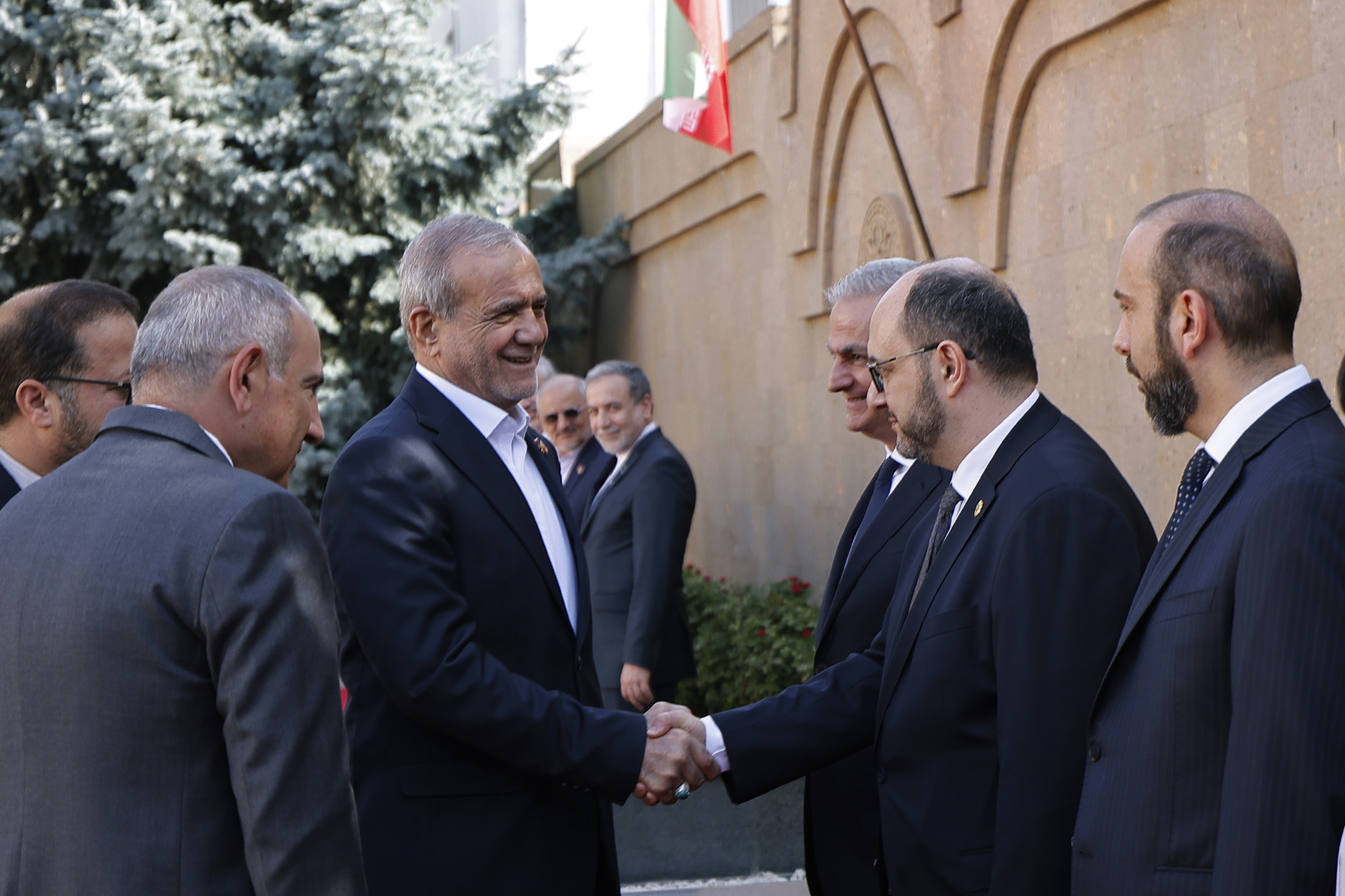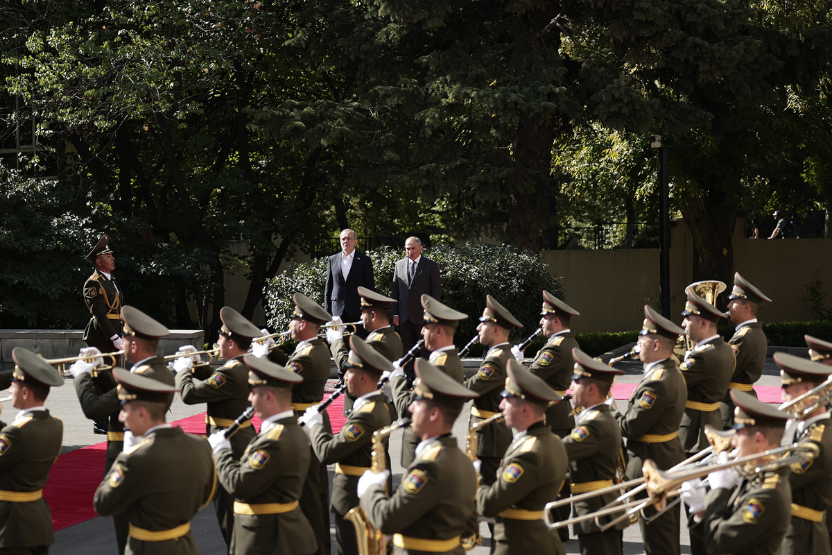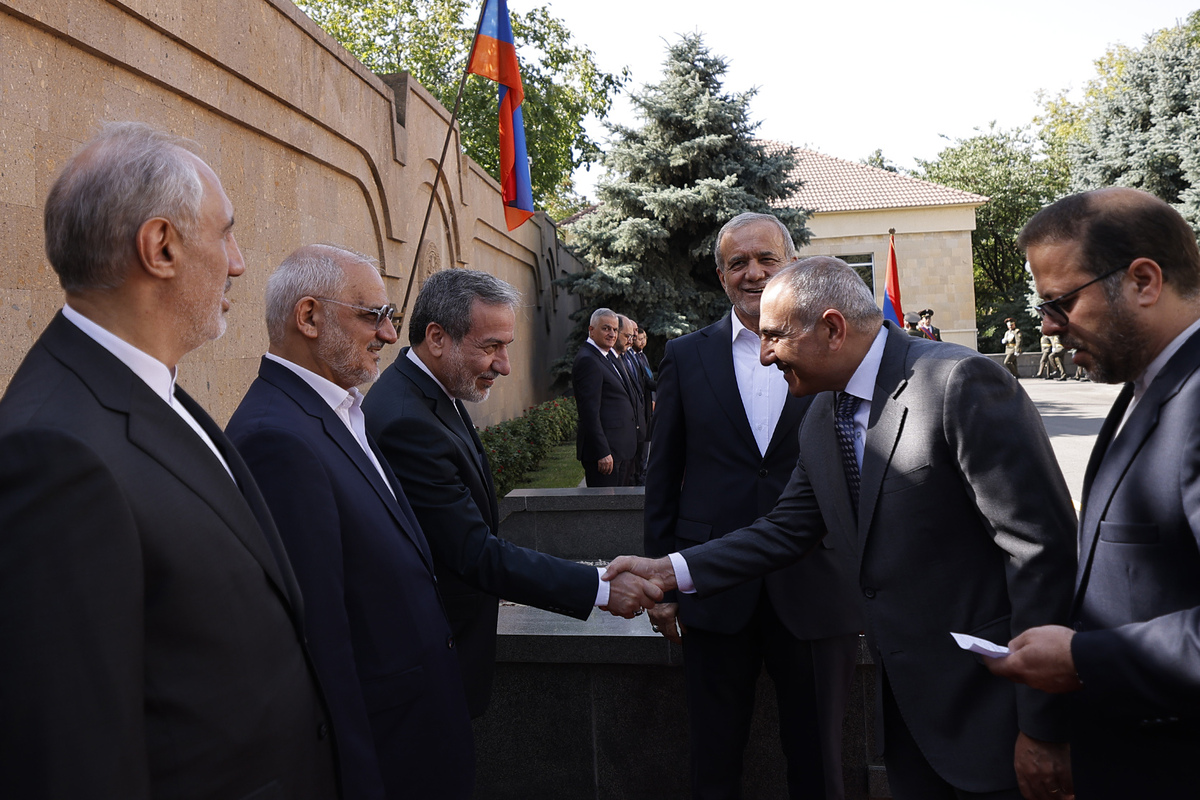 Prime Minister Nikol Pashinyan hosted Iranian President Masoud Pezeshkian, who arrived in Armenia on an official visit. First, an official welcoming ceremony was held, during which the national anthems of Armenia and Iran were performed, and then the leaders of the two countries welcomed the members of the delegations.