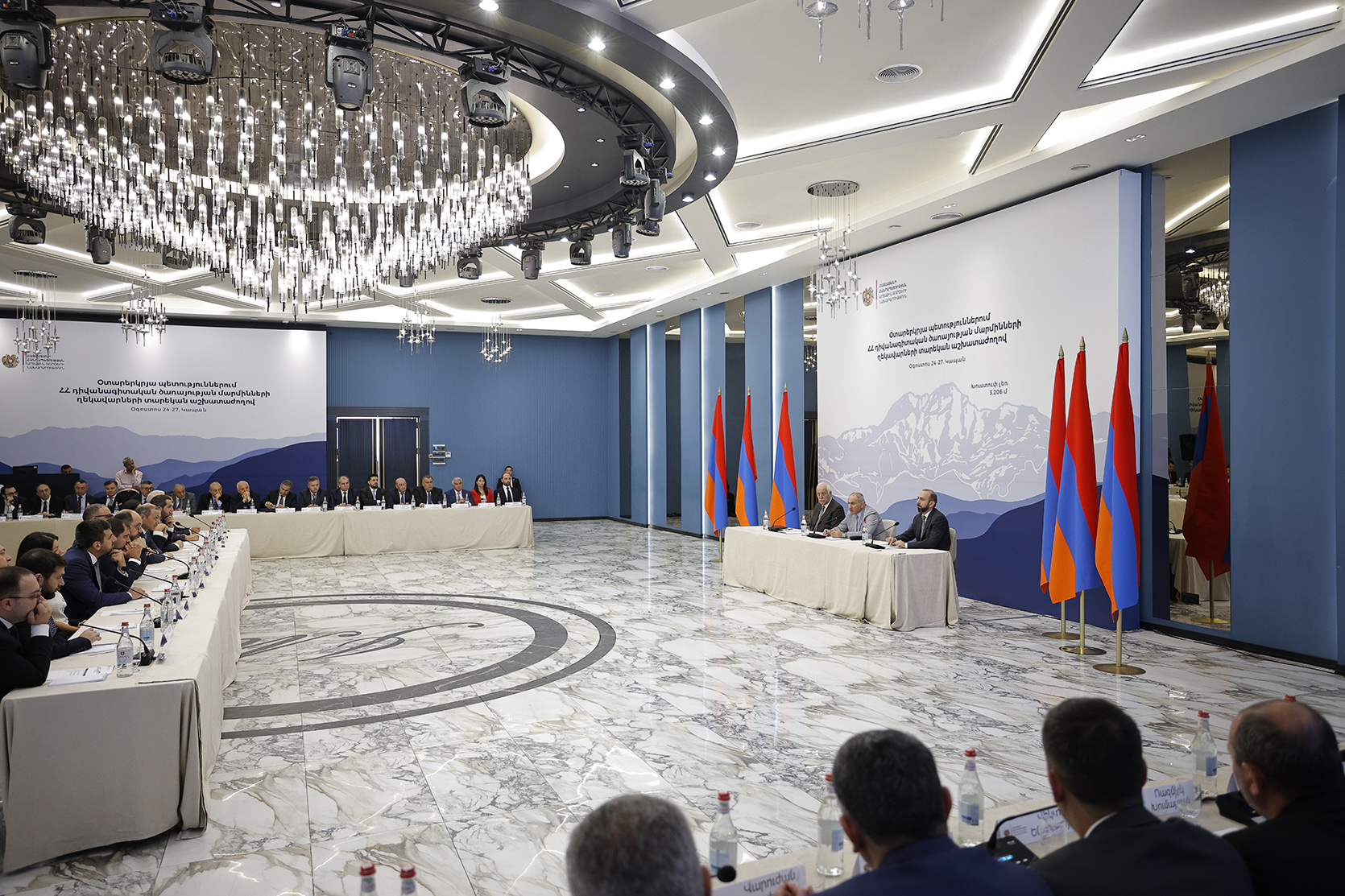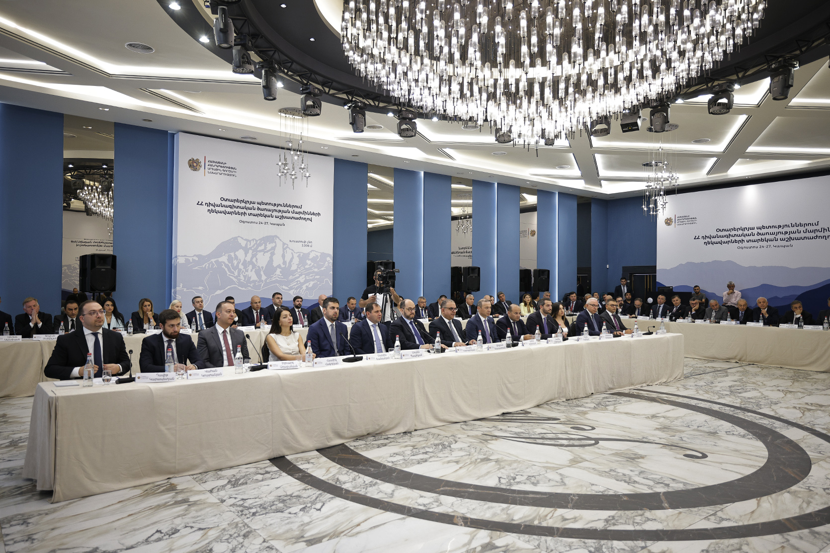 Prime Minister Nikol Pashinyan and President of the Republic Vahagn Khachaturyan attended the launch of the annual workshop of heads of diplomatic missions of the Republic of Armenia abroad.