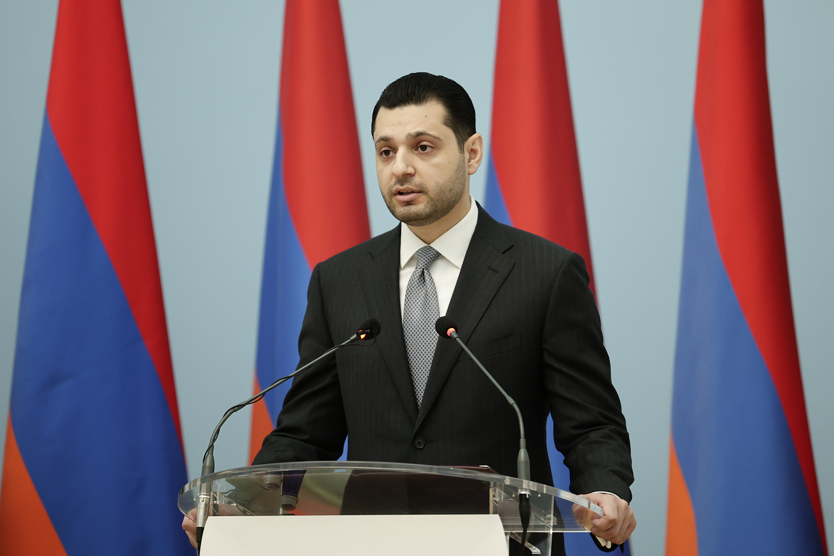 The latter, reading the text of the oath, stated: "For the sake of implementation of the pan-national goals and strengthening of the homeland, I swear to fulfil my obligations before the people in good faith, observe the Constitution and laws of the Republic of Armenia, contribute to maintenance of the sovereignty and interests of the Republic of Armenia, remain loyal to the high title of member of the Government,”
